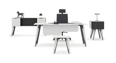 Arbeitszimmer Schreibtisch Büroschrank Kommode Couchtisch Weiß- Schwarz