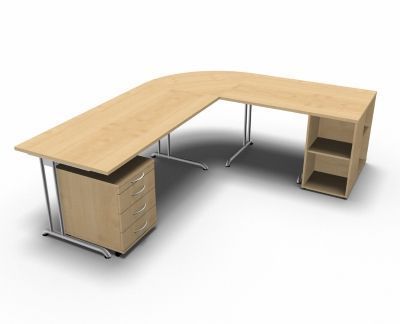 Schreibtischkombination HB12 Dekor wählbar Lieferumfang: 1 x Schreibtisch 160 cm 1 x Eckplatte - 90 Grad Viertelkreis 1 x Schreibtisch 80 cm 1 x Anstellcontainer offen 1 x Rollcontainer