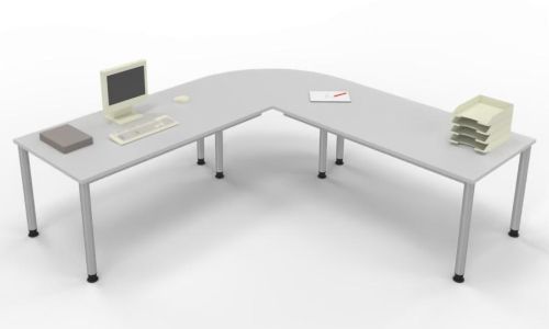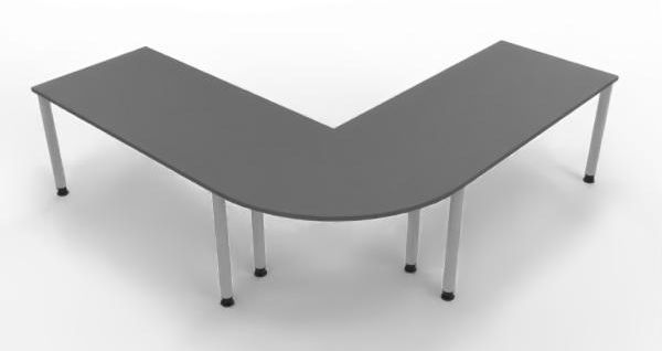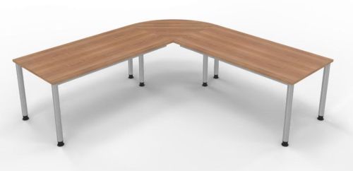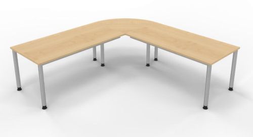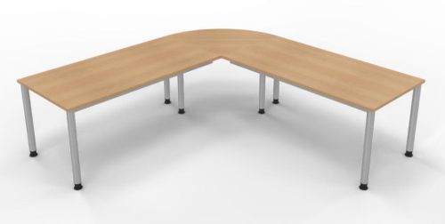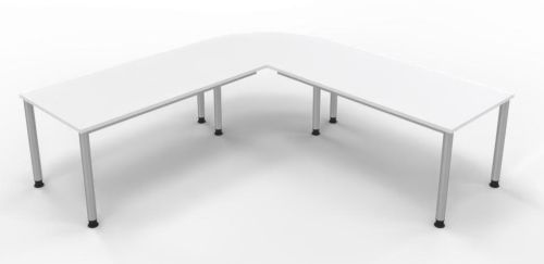 Schreibtischkombination SH7 mit 4-Fuß-Gestell bestehend aus: 2 x Schreibtisch 160 x 80 x 68,5 bis 81 cm (B x T x H) und 1 x Verkettungsplatte Viertelkreis 80 x 80 x 2,5 cm (B x T x H)