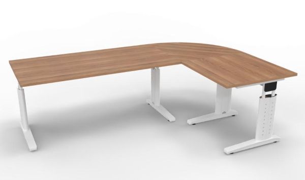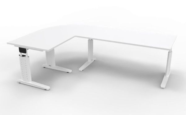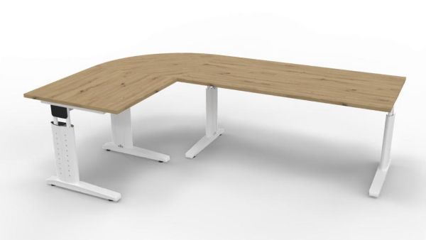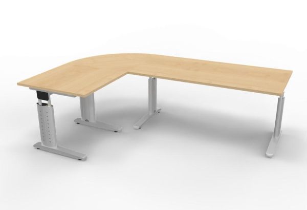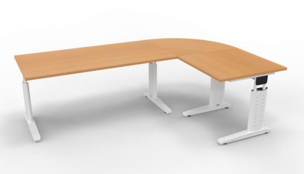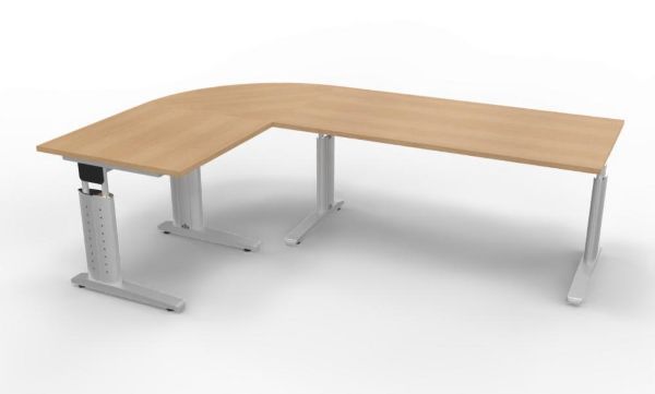 Winkelschreibtisch Stellfäche 160x240 cm bestehend aus: 1 x Schreibtisch 160 x 80 x 68-86 cm (B x T x H) 1 x Schreibtisch 80 x 80 x 68-86 cm (B x T x H) 1 x Verkettungsplatte Viertelkreis 80 x 80 x 2,5 cm (B x T x H)