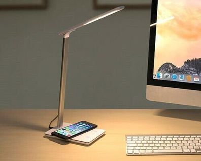 LED Lampe Leuchte lädt kabellos per QI wireless Ladestation für Handy Smartphone