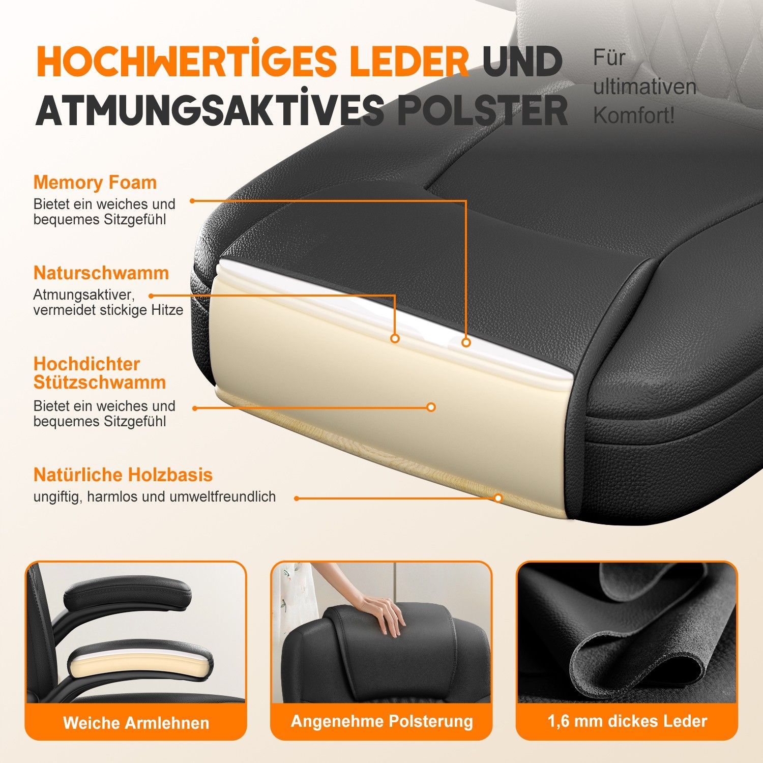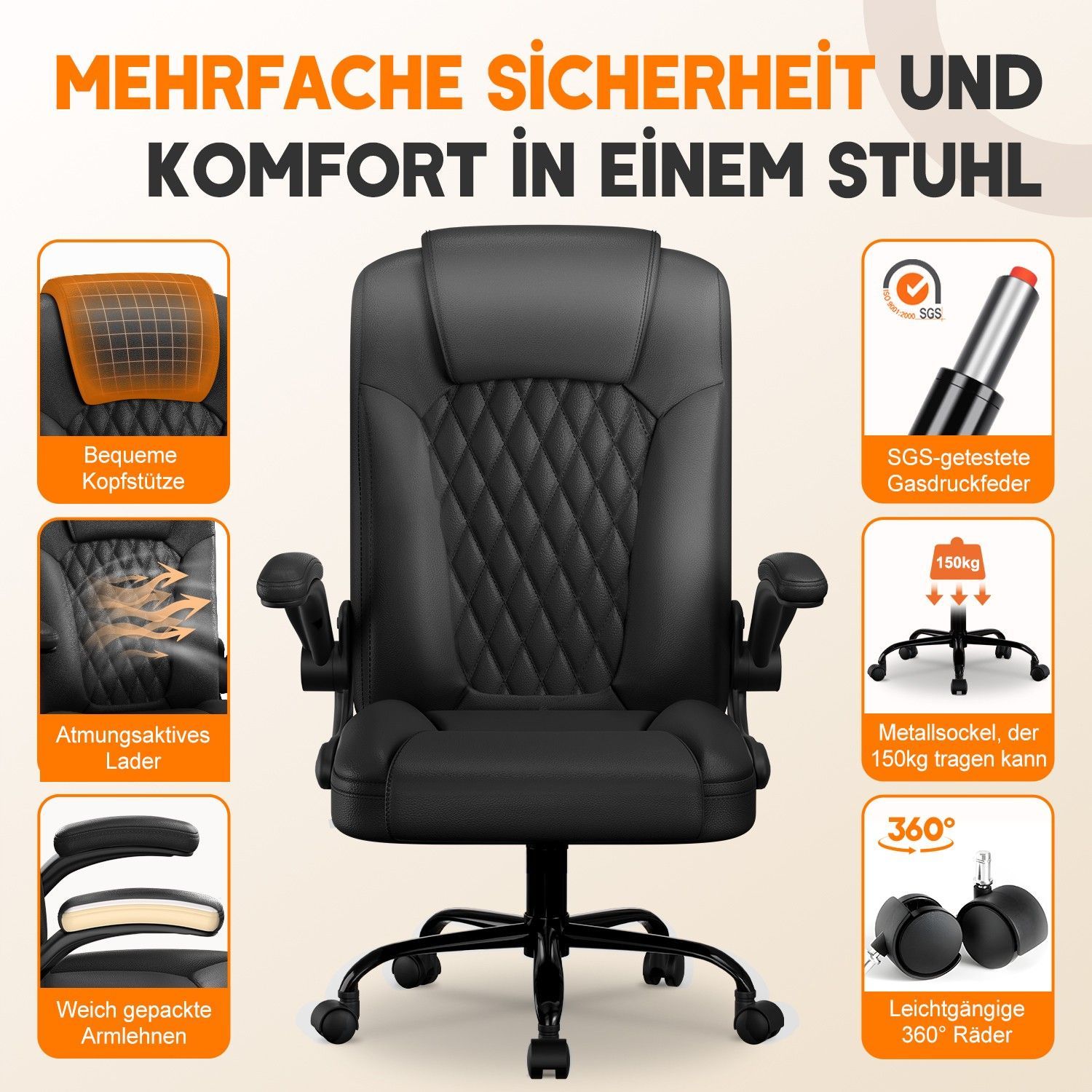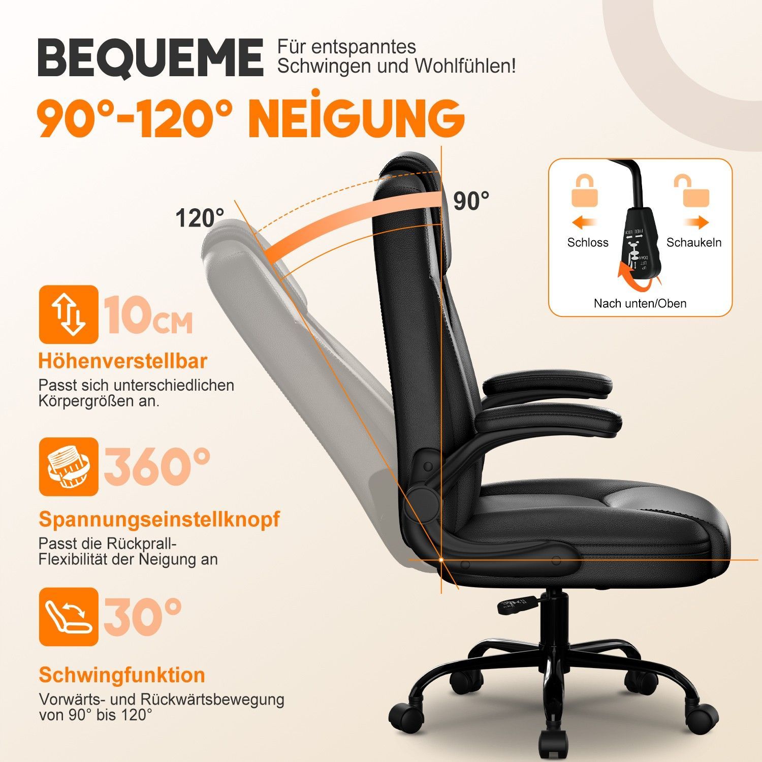 Schreibtischstuhl 90° Klappbaren Armlehnen, Schreibtisch Stuhl 90-120° Wippfunktion