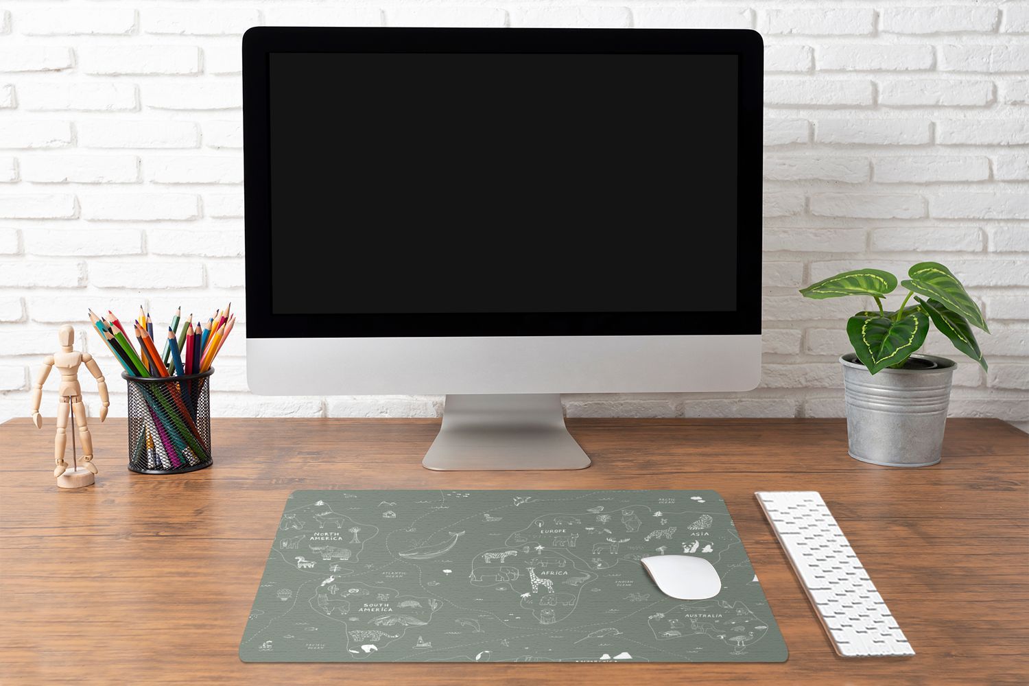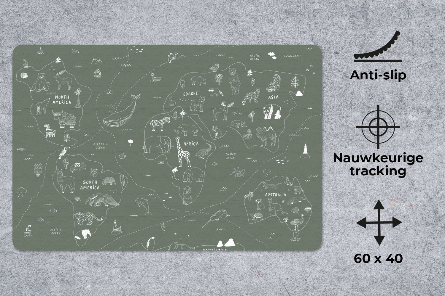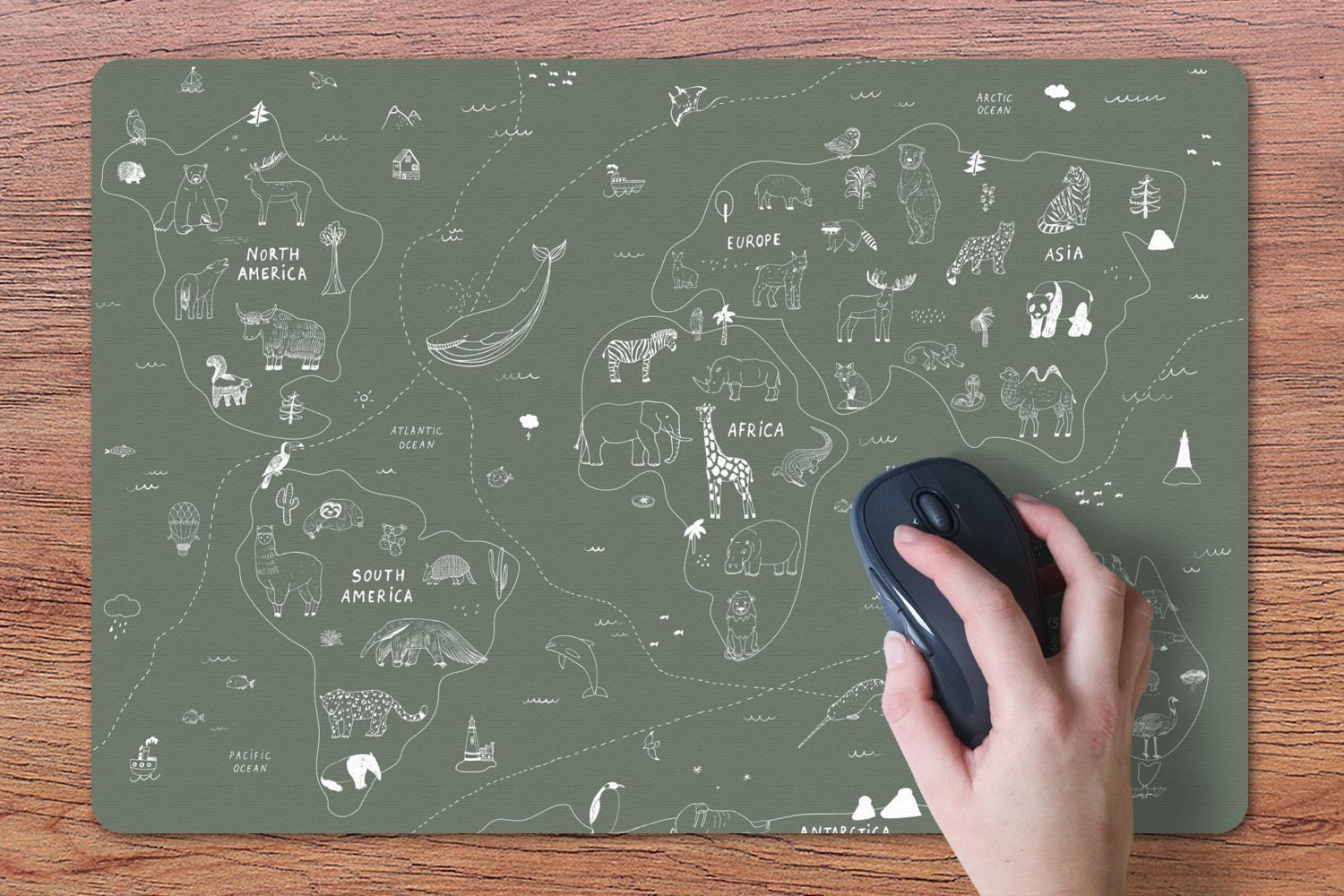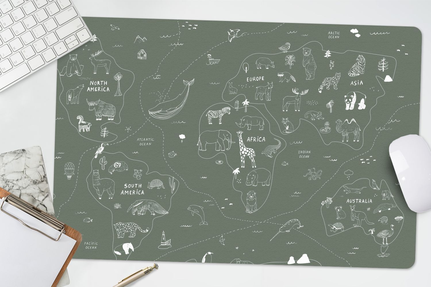 Schreibtischunterlage - Karte - Welt - Kinder - Grün - 60x40 cm - Mauspad