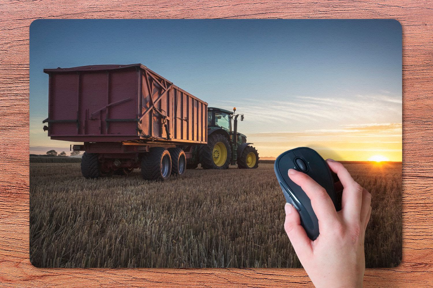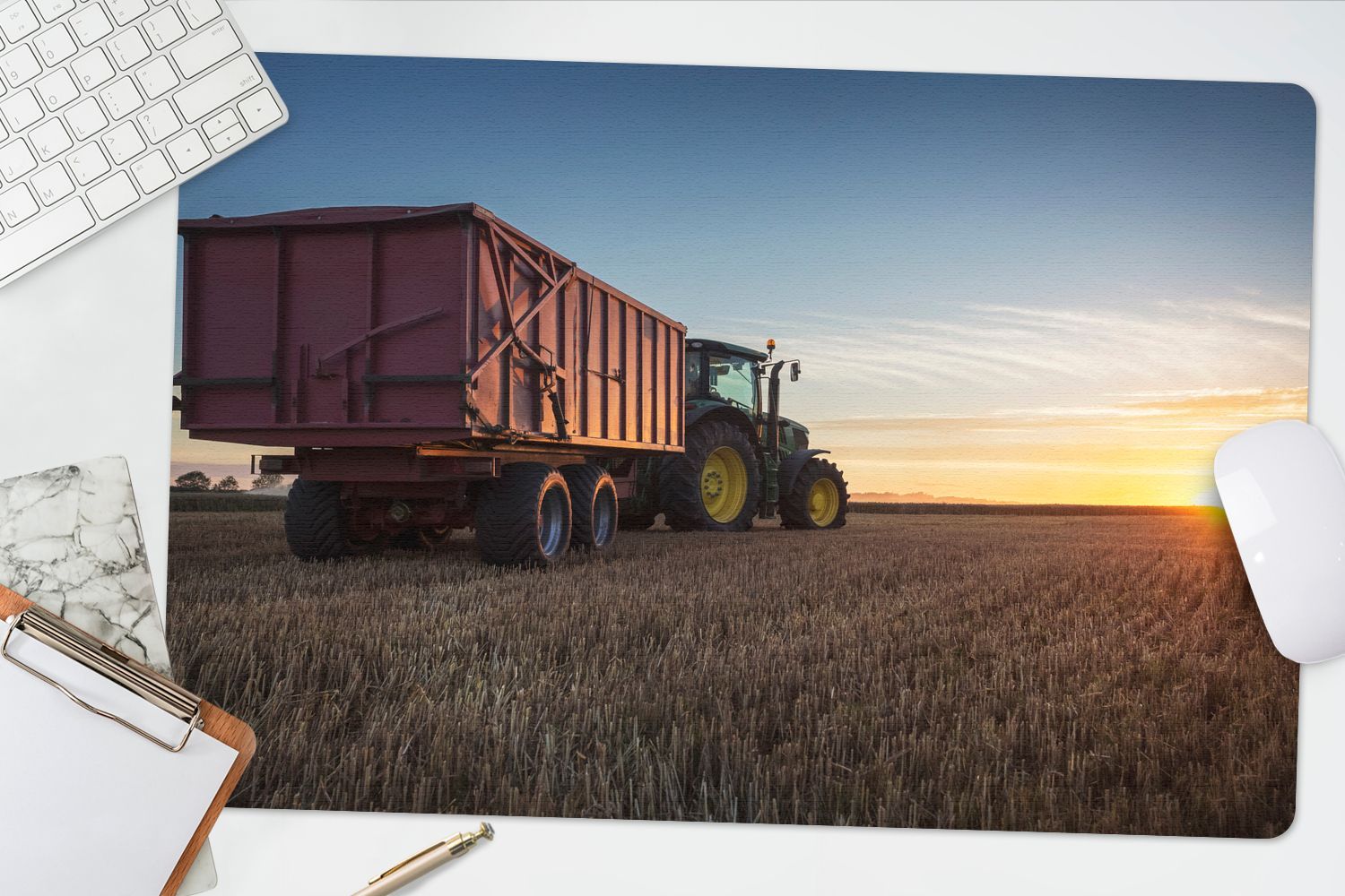 Schreibtischunterlage - Traktor - John Deer - Sonnenuntergang - 60x40 cm - Mauspad