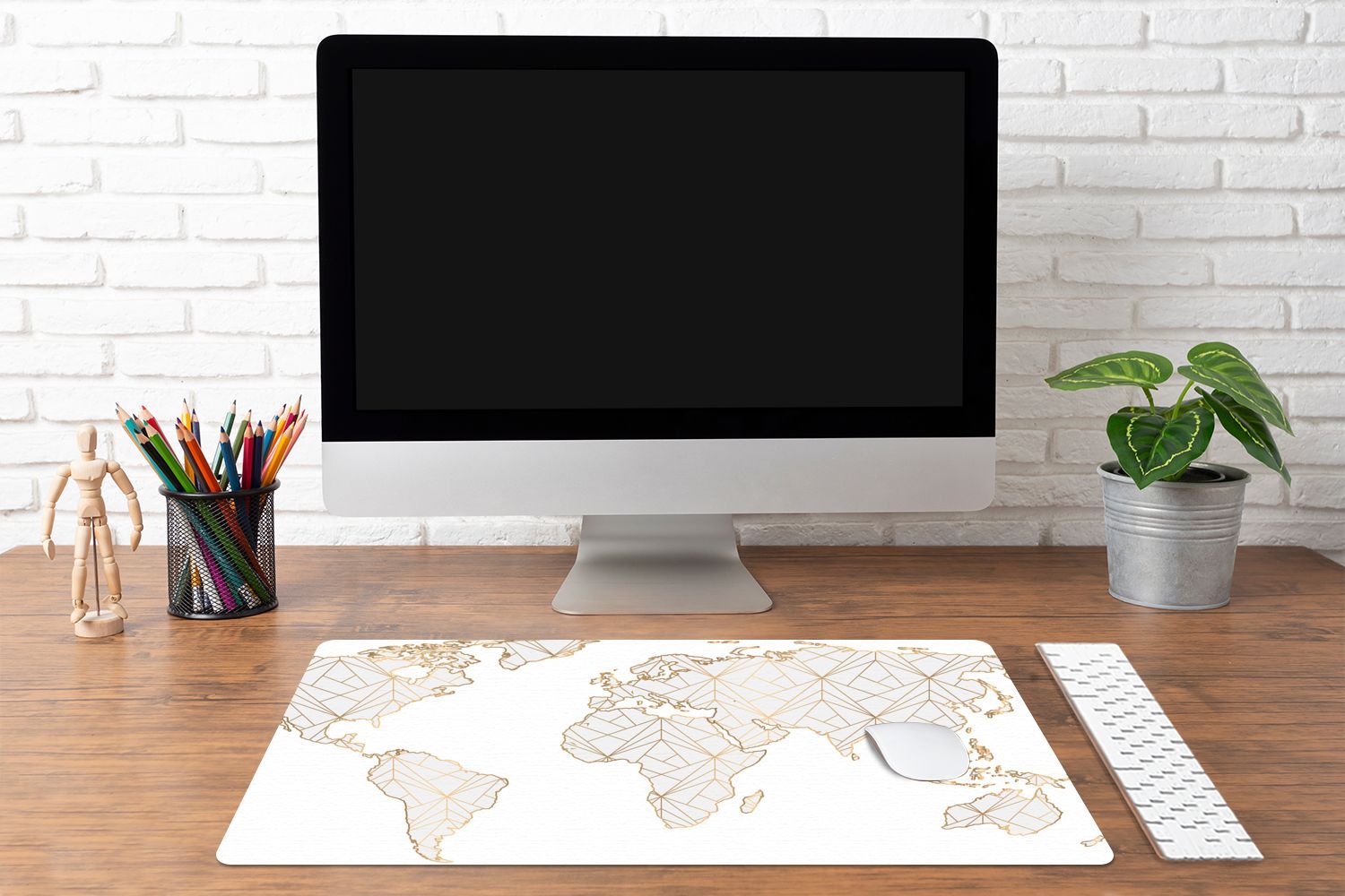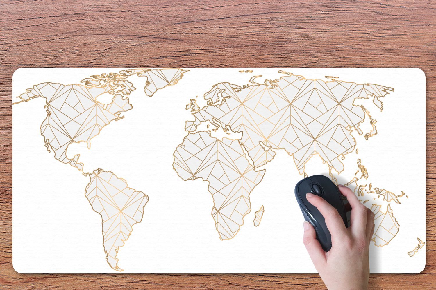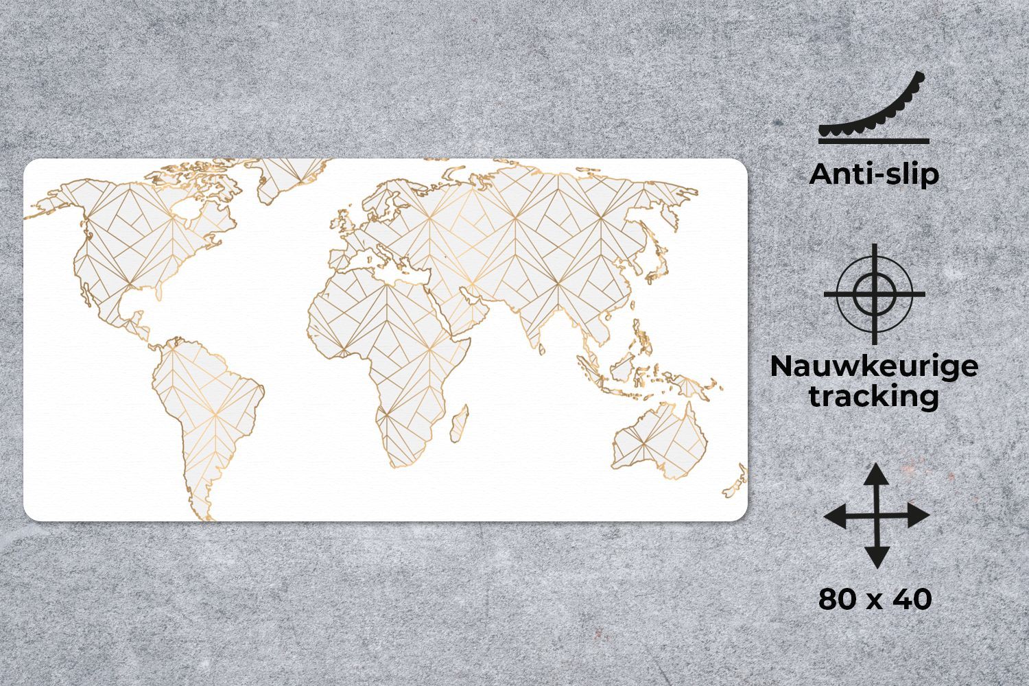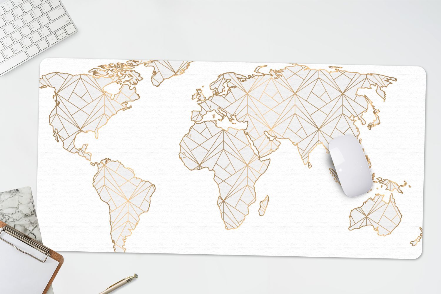 Schreibtischunterlage - Weltkarte - Linien - Gold - 80x40 cm - Mauspad