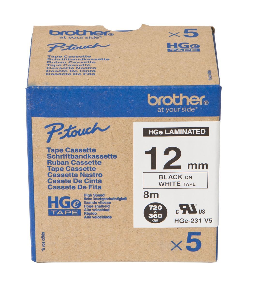 Brother Schriftband HGe-231V5 (5 Stk) Schwarz auf Weiß 12mm x 8m