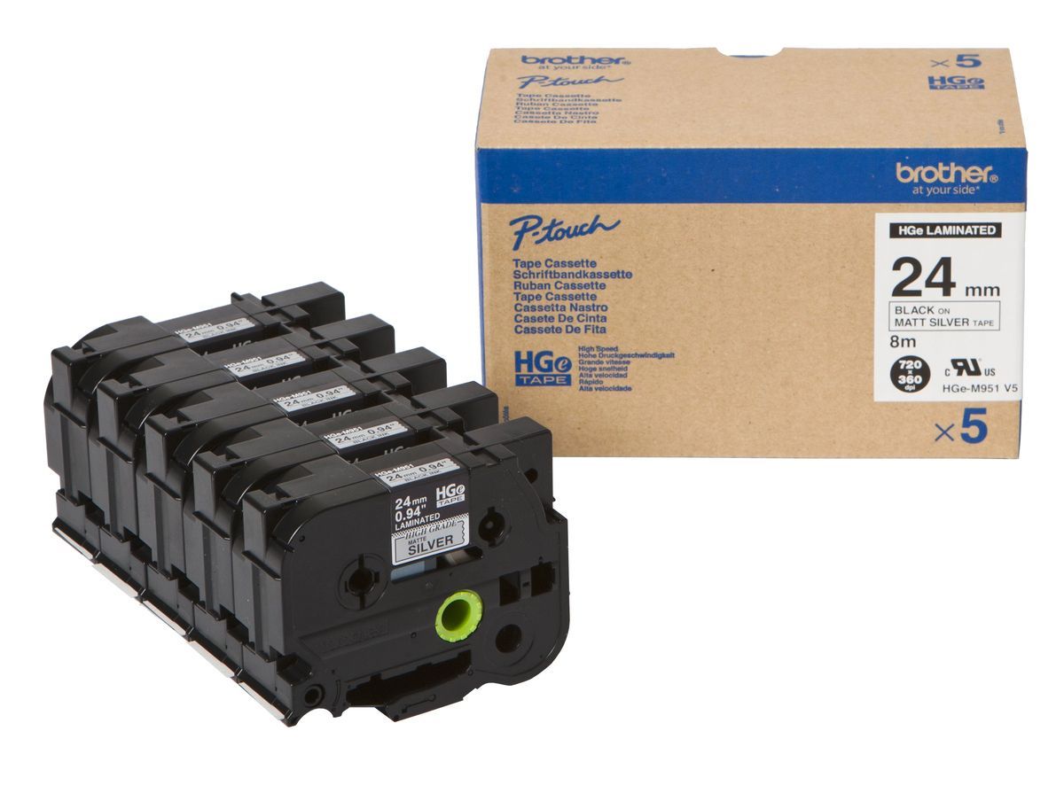 Brother Schriftband HGe-M951V5 (5 Stk) Schwarz auf Silber 24mm x 8m