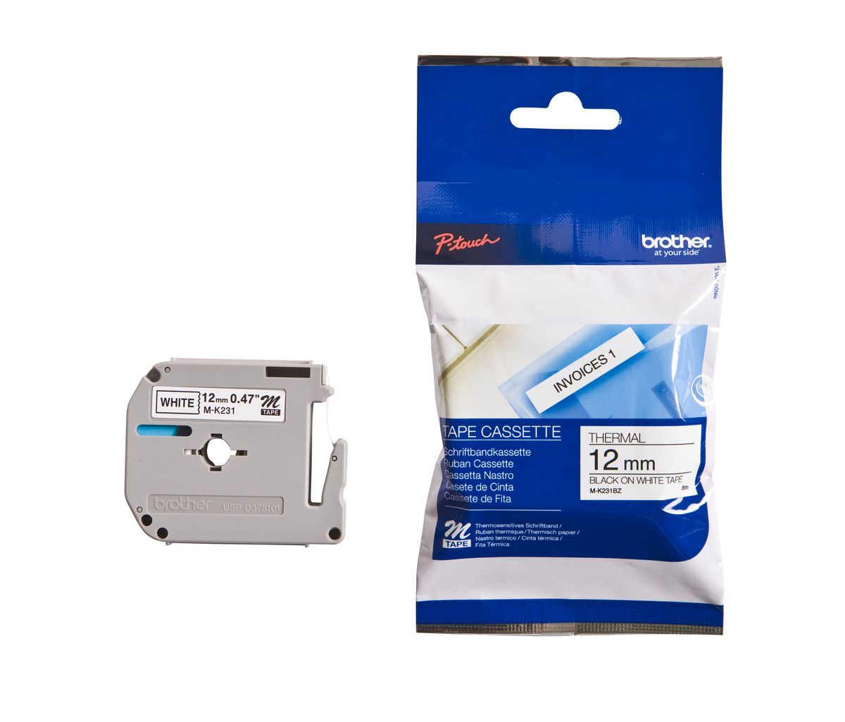 Brother Schriftband M-K231 (nicht lam.) Schwarz auf Weiß 12mm x 8m