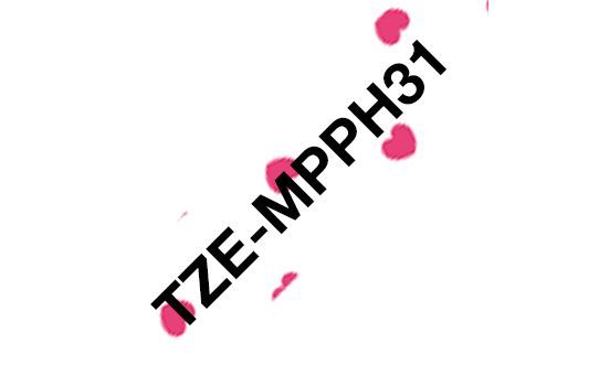 Brother Schriftband TZe-MPPH31 rosa Herzen / schwarz 12mm x 4m