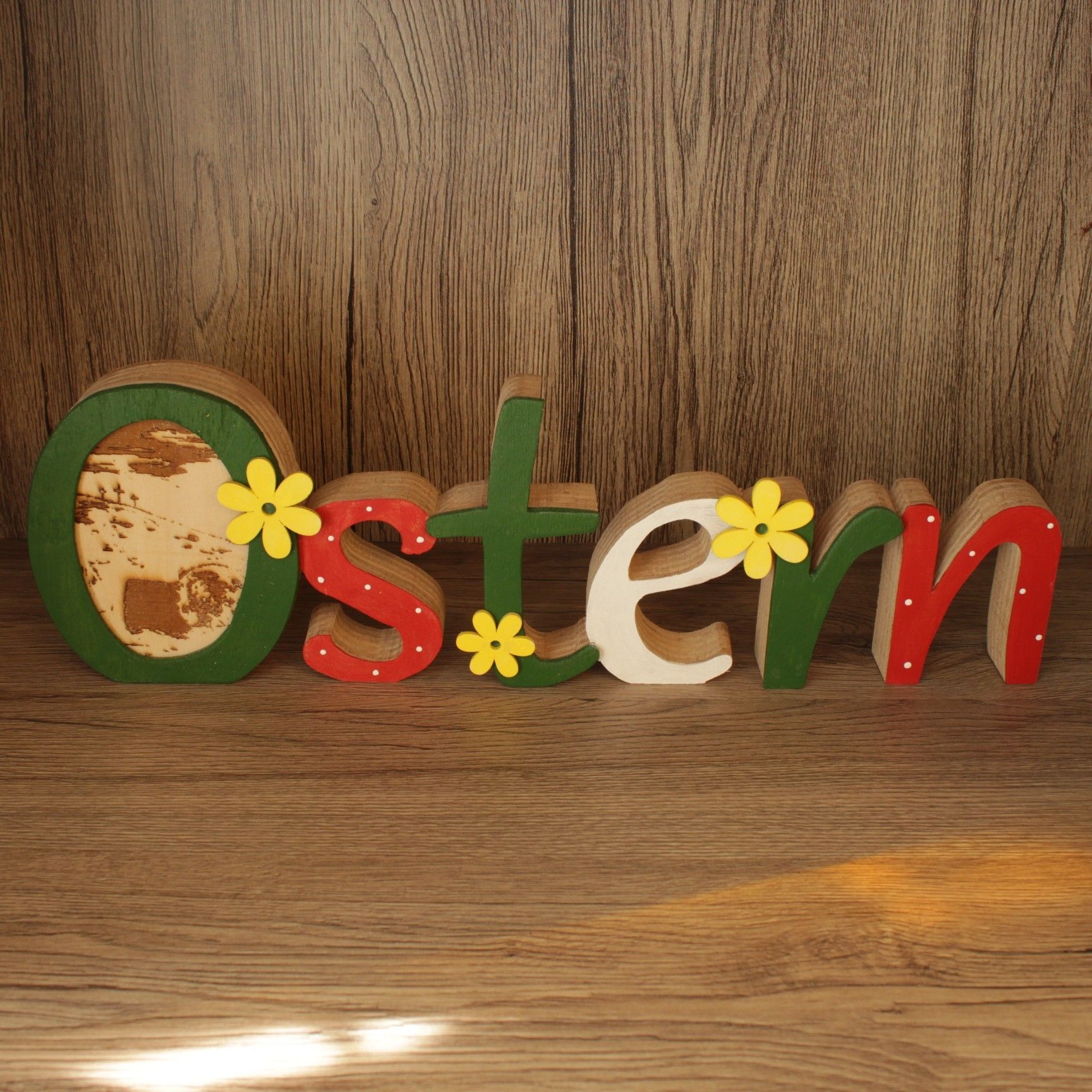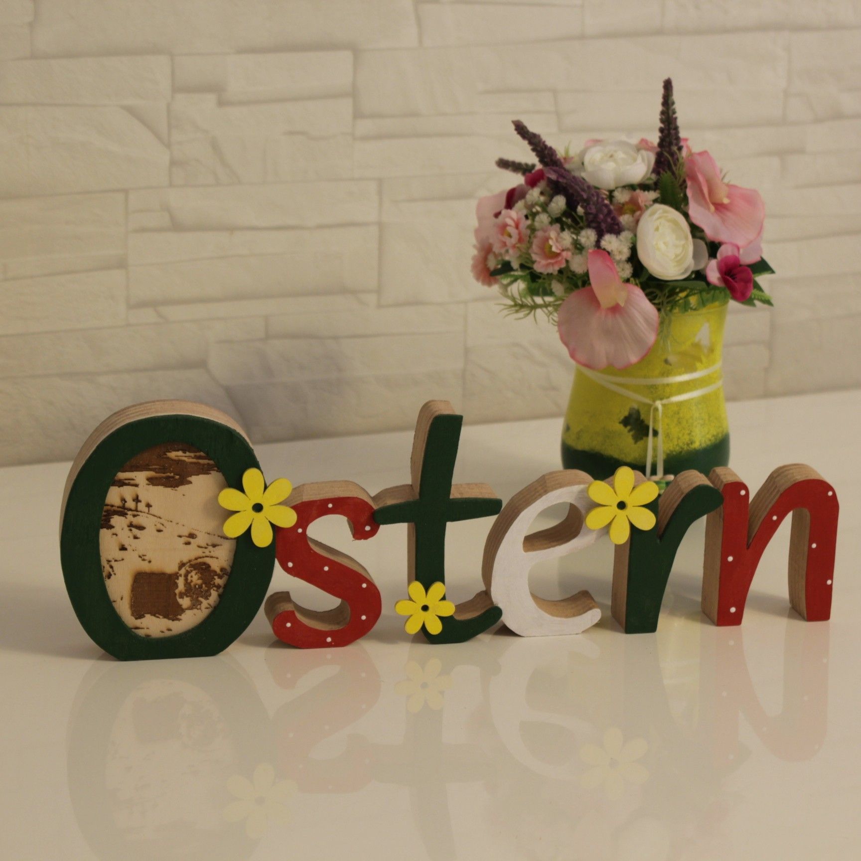 Schriftzug Ostern bunt 38 cm Handmade leere Grab drei Kreuze