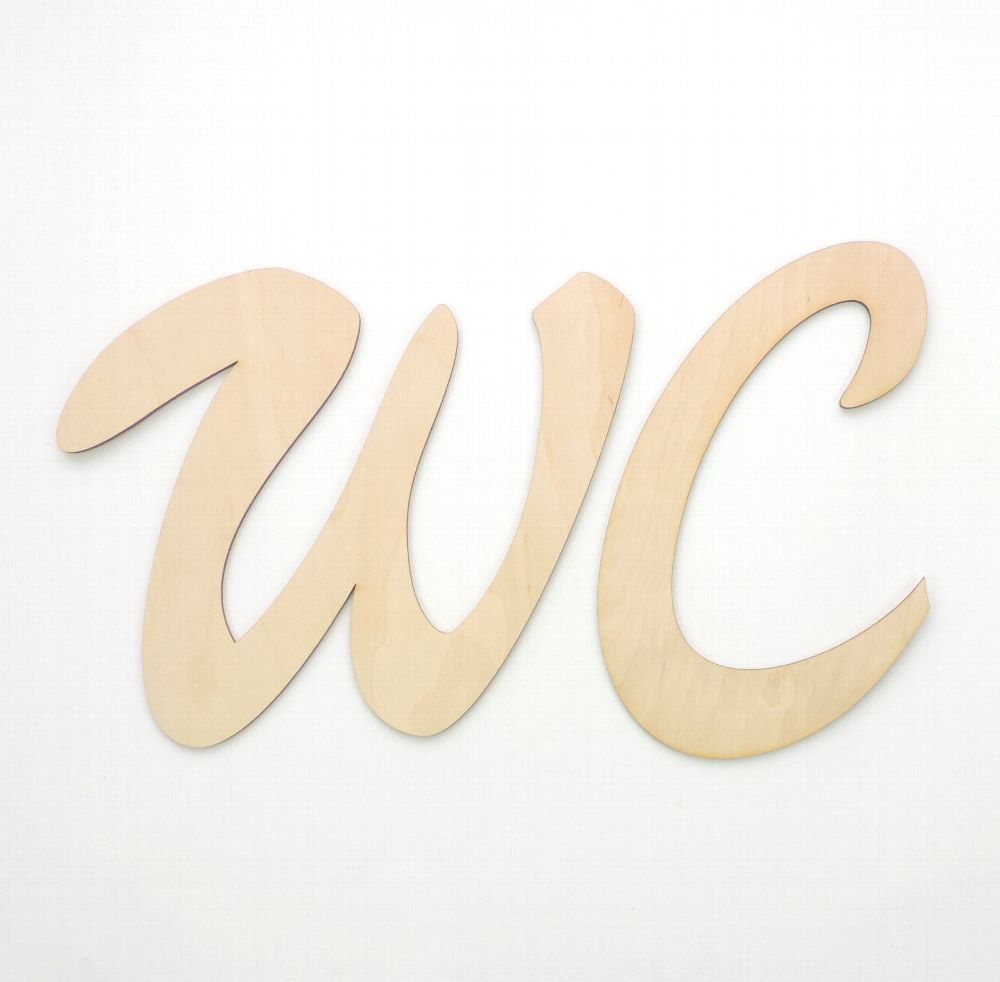 Schriftzug WC Mit diesem schönen Schriftzug lassen sich Türen oder Wände gestalten. Die Buchstaben sind 20cm hoch und aus 3mm starkem, naturbelassenen Birkensperrholz gelasert. Anzahl:2Stück Höhe:20cm Stärke:3mm Farbe:natur Material:Birkensperrholz Weitere Schriftzüge und Buchstaben finden Sie in un