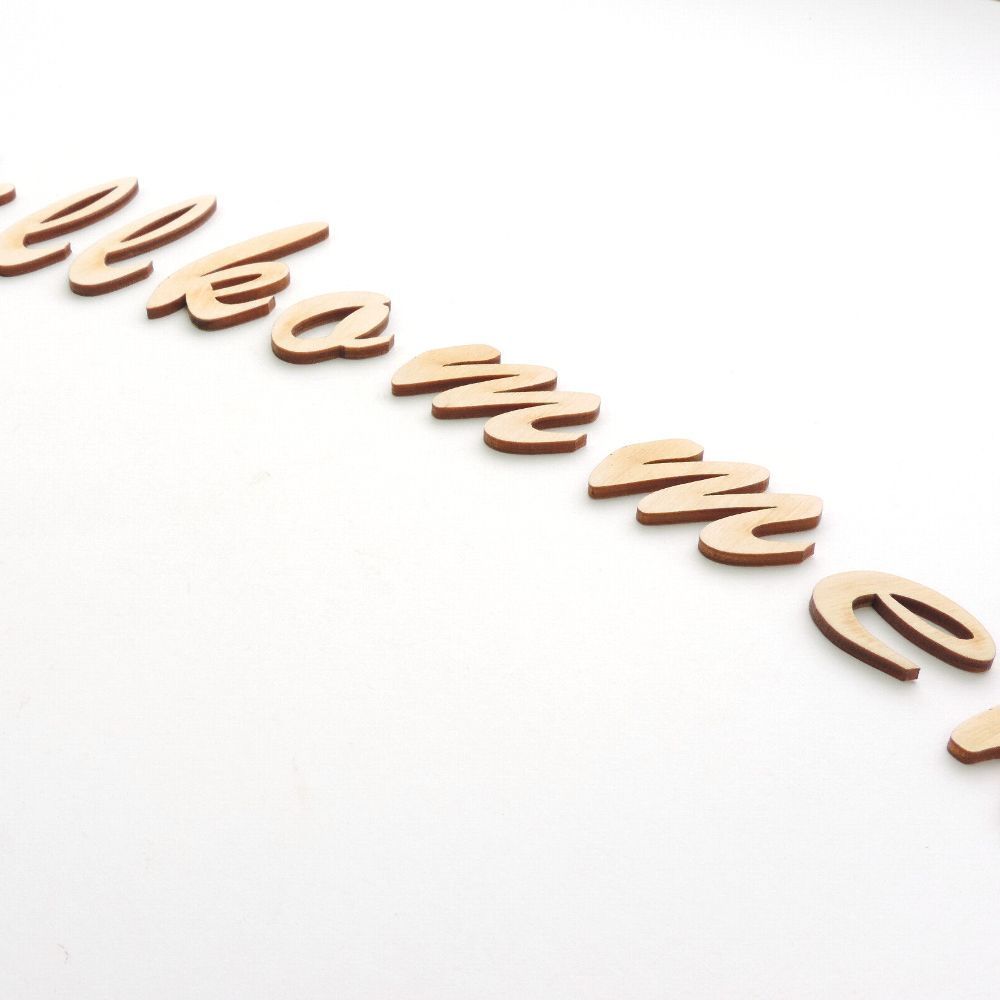Schriftzug Willkommen Mit diesen schönen Holzbuchstaben lassen sich Türen und Wände gestalten. Die Buchstaben werden aus 3mm starken Birkensperrholz gelasert und naturbelassen geliefert. Der große Buchstabe ist 5cm hoch und die kleinen ca. 2,5cm. Anzahl:10Stück Höhe:2,5 bis 5cm Stärke:3mm Farbe:Natu