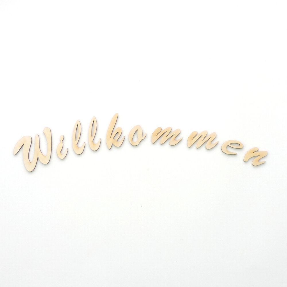 Schriftzug Willkommen aus Holz 5cm Wandtattoo Text Buchstaben Schilder Eingang