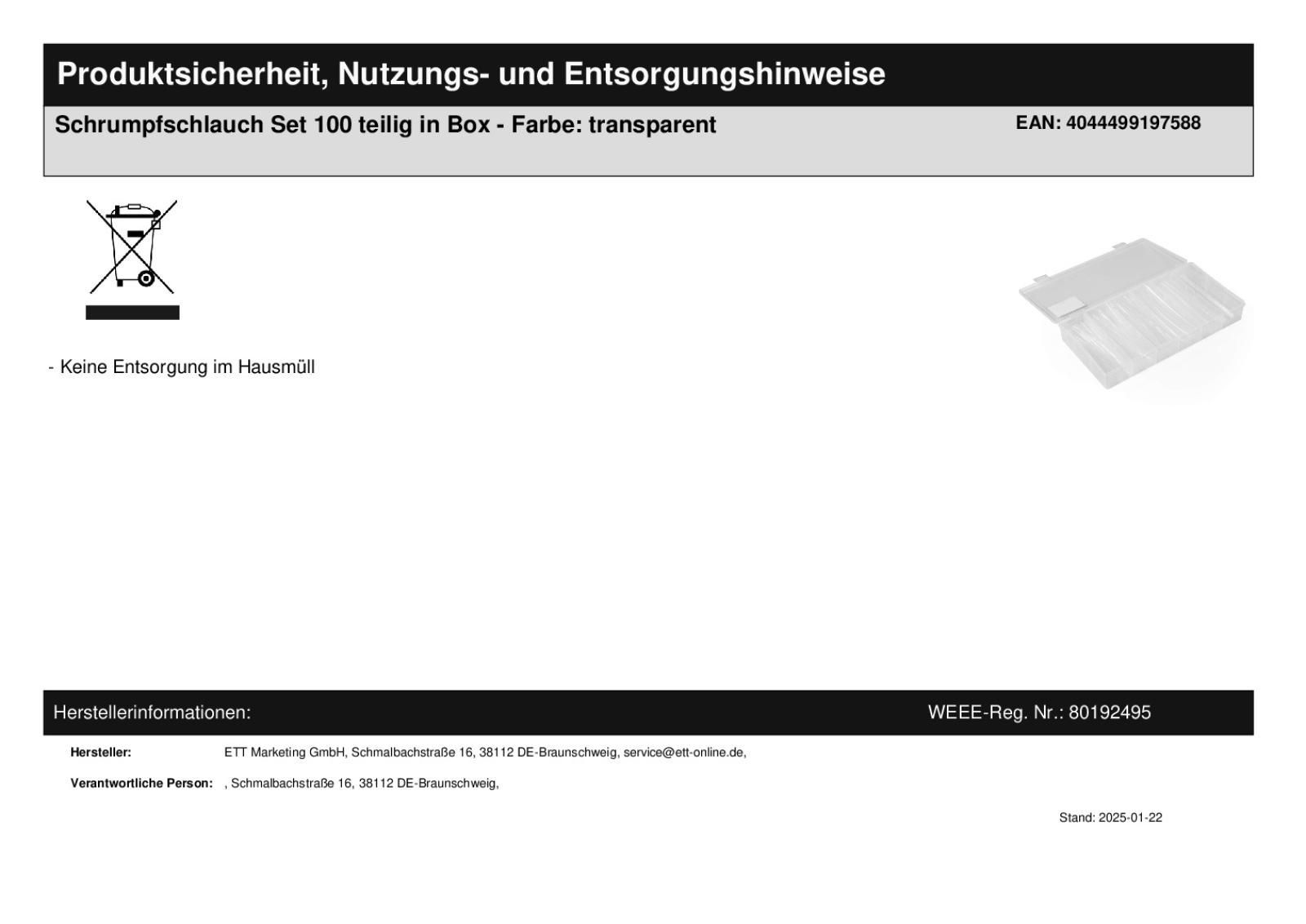 ETT Schrumpfschlauch Set 100 teilig in Box Farbe: transparent Wärmeschrumpfschlauch