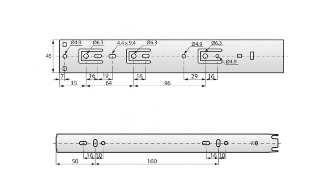 Schubkasten Vollauszug Schubladenschiene Teleskopschiene Führungsschiene DB45PO