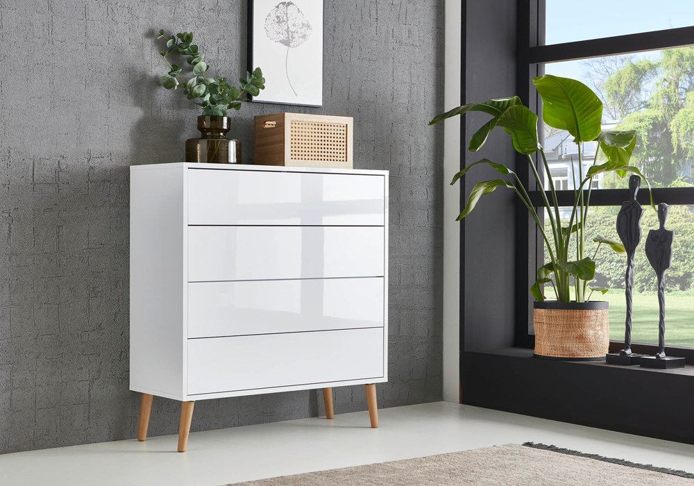 Schubkastenkommode BEN 3 mit 4 Holzfüßen und Push-to-open-Funktion