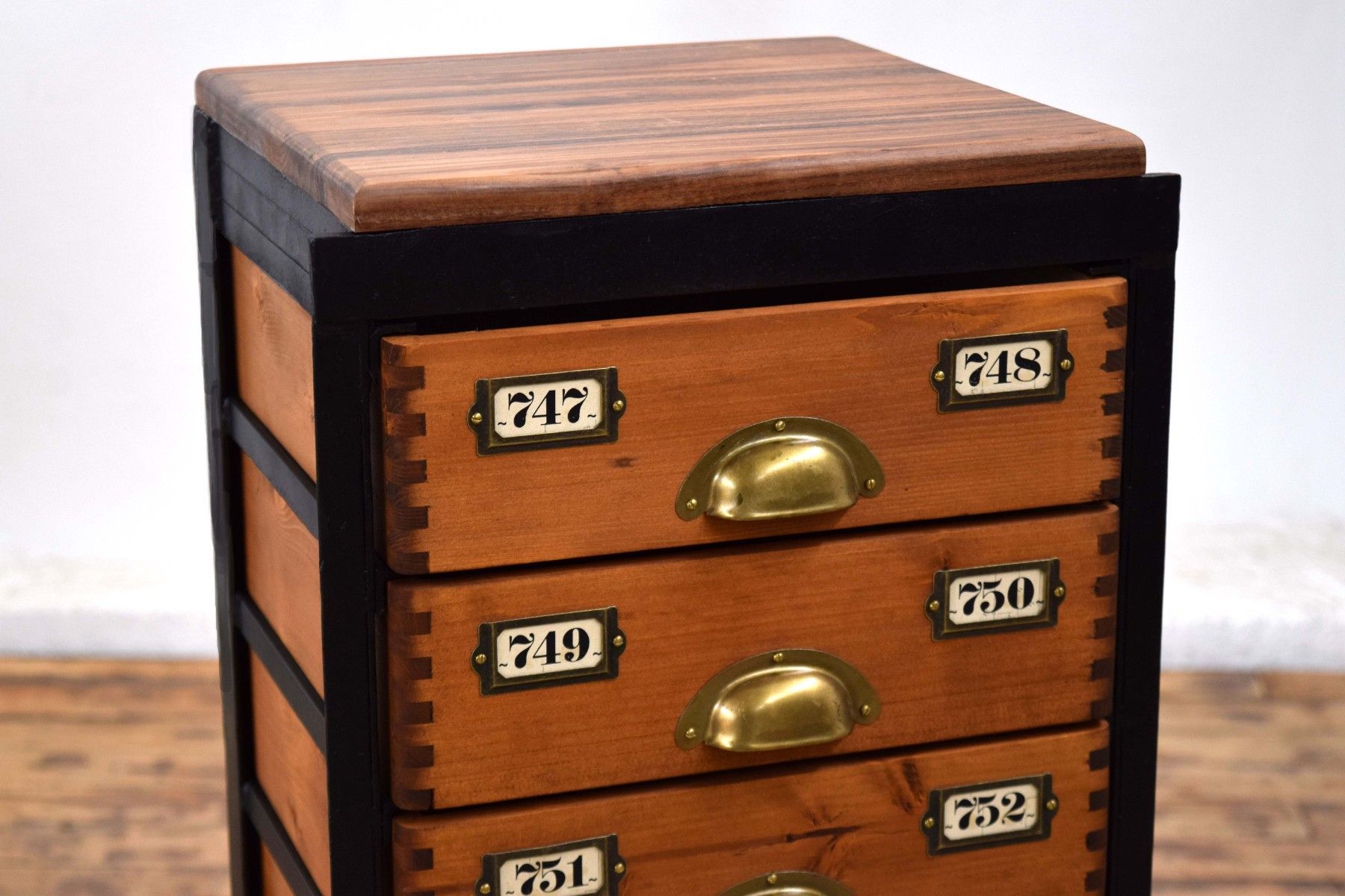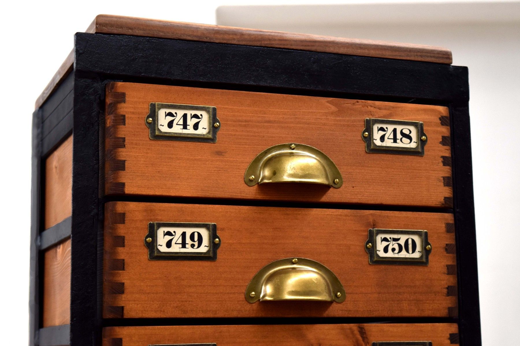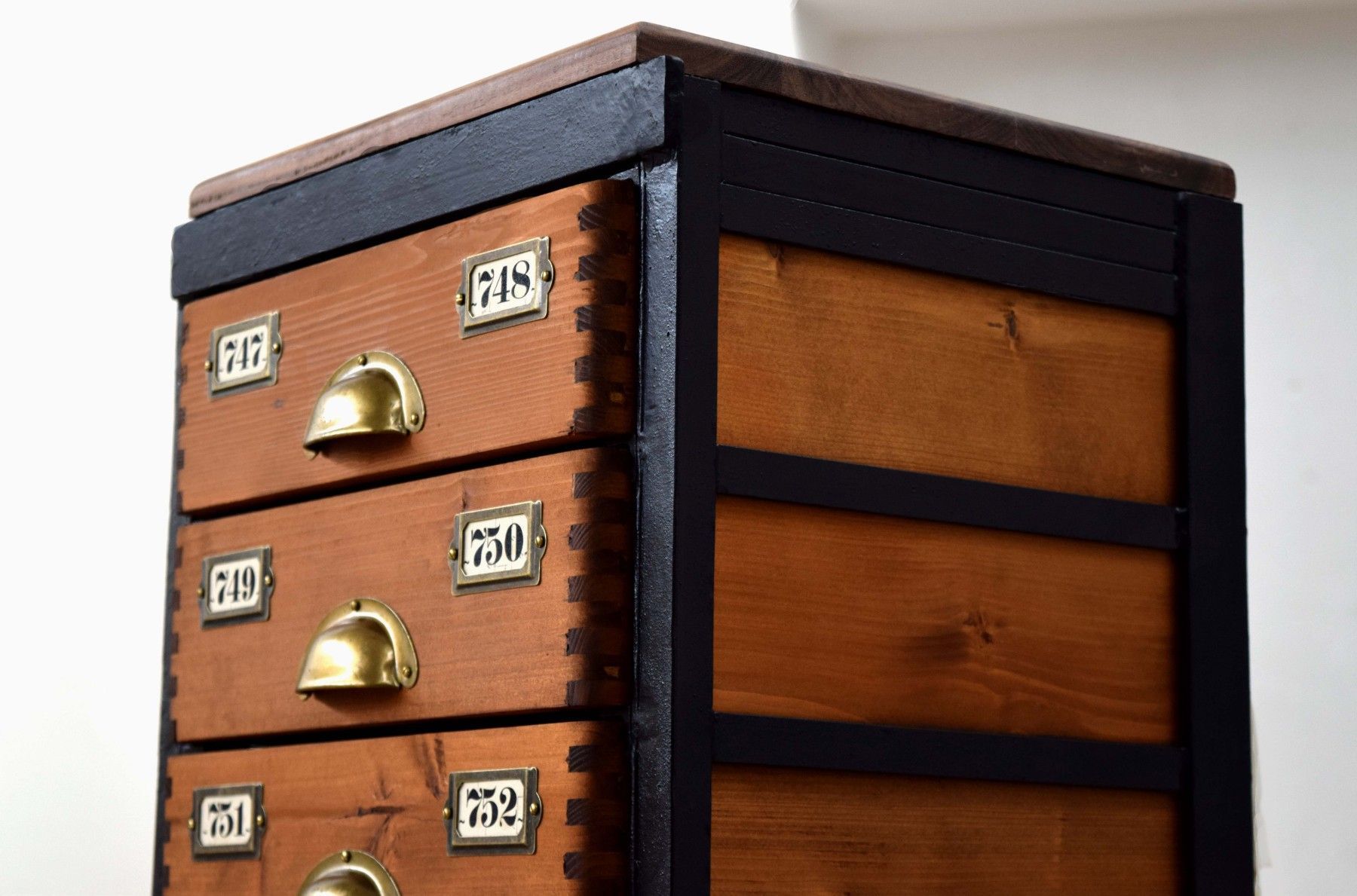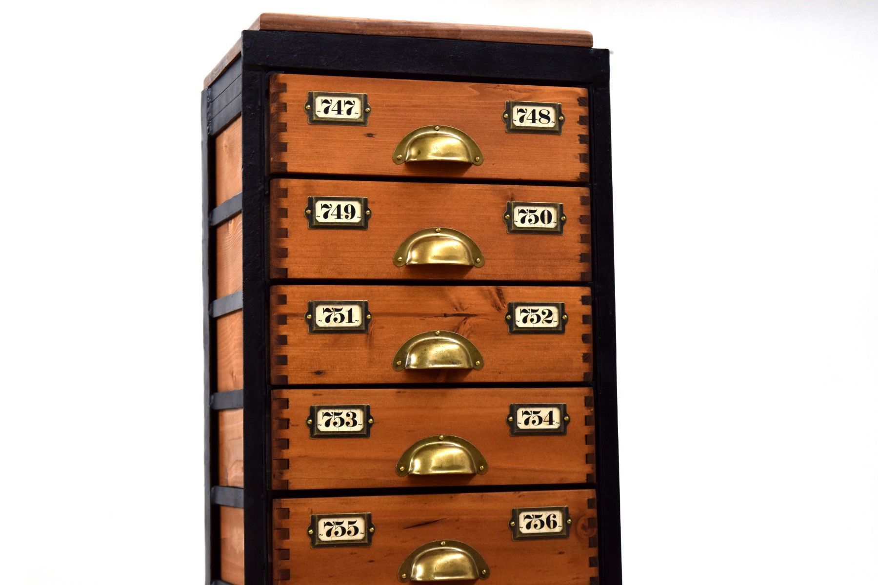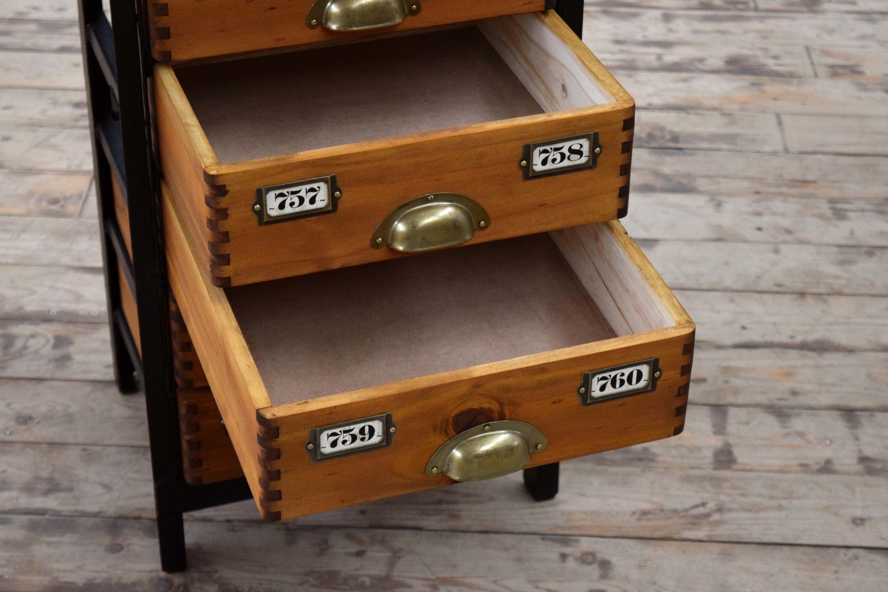 Schubladenschrank Bauhaus Loft Antik Apothekerschrank Holz Alt Metall schmal hoch
