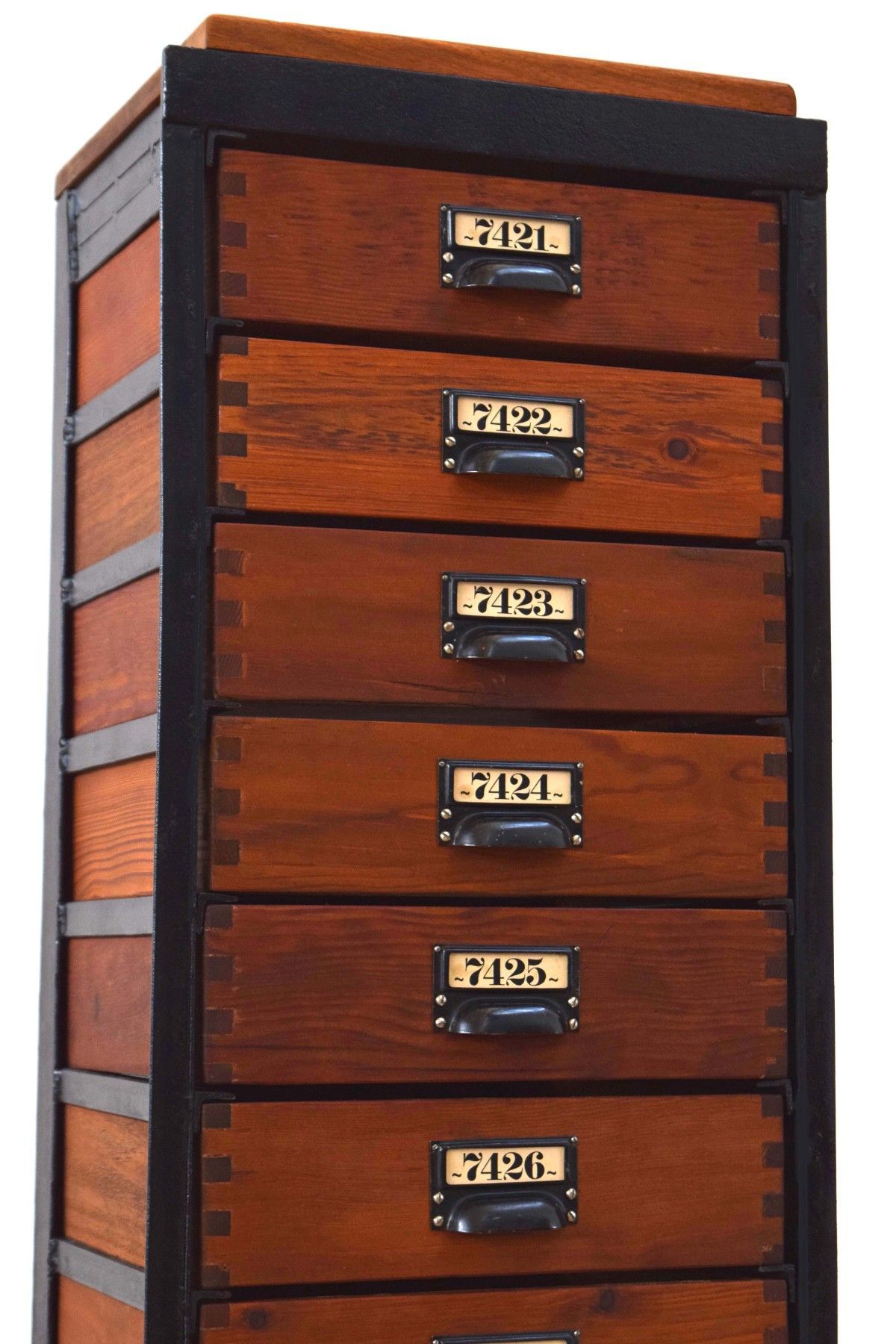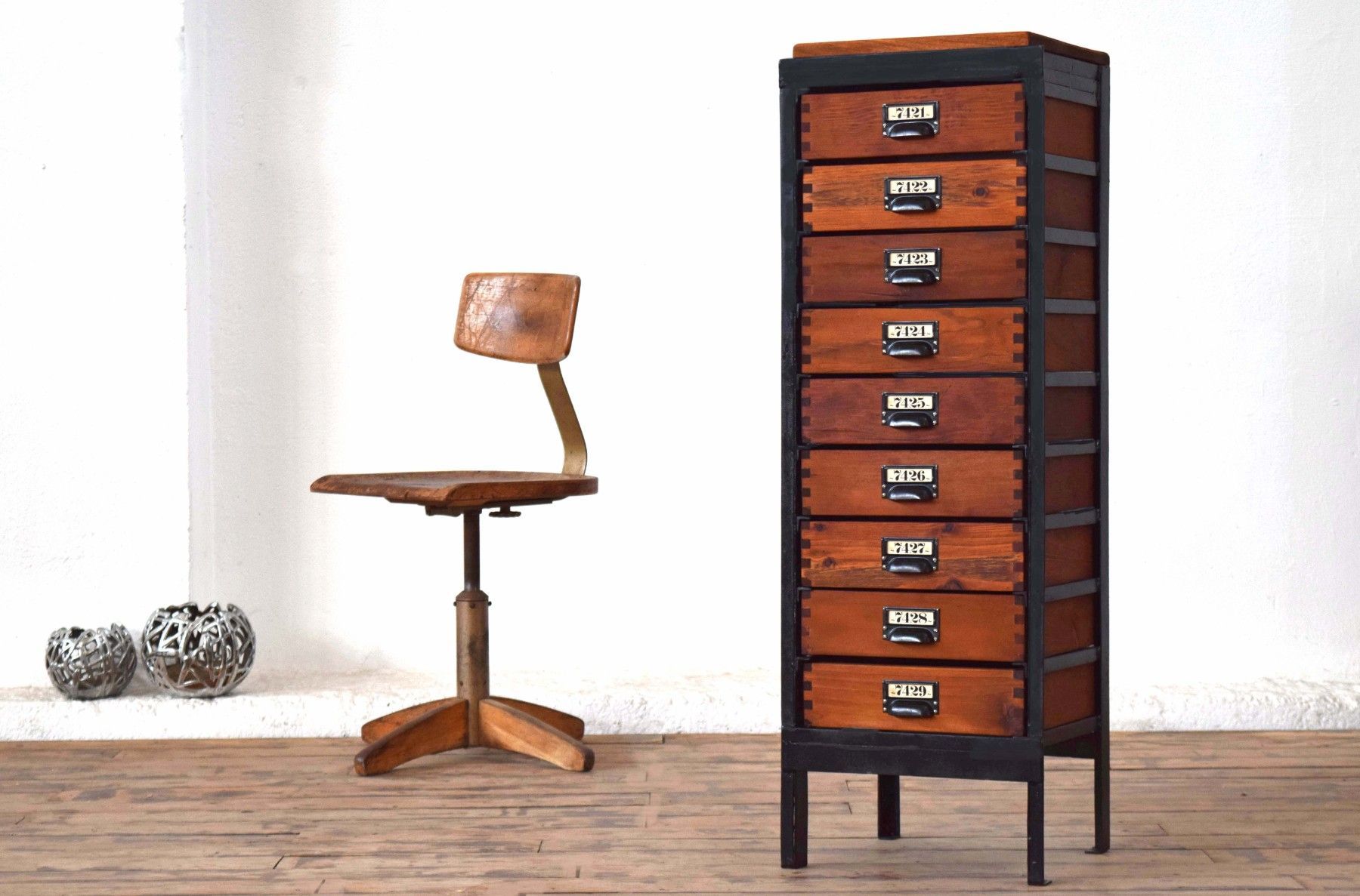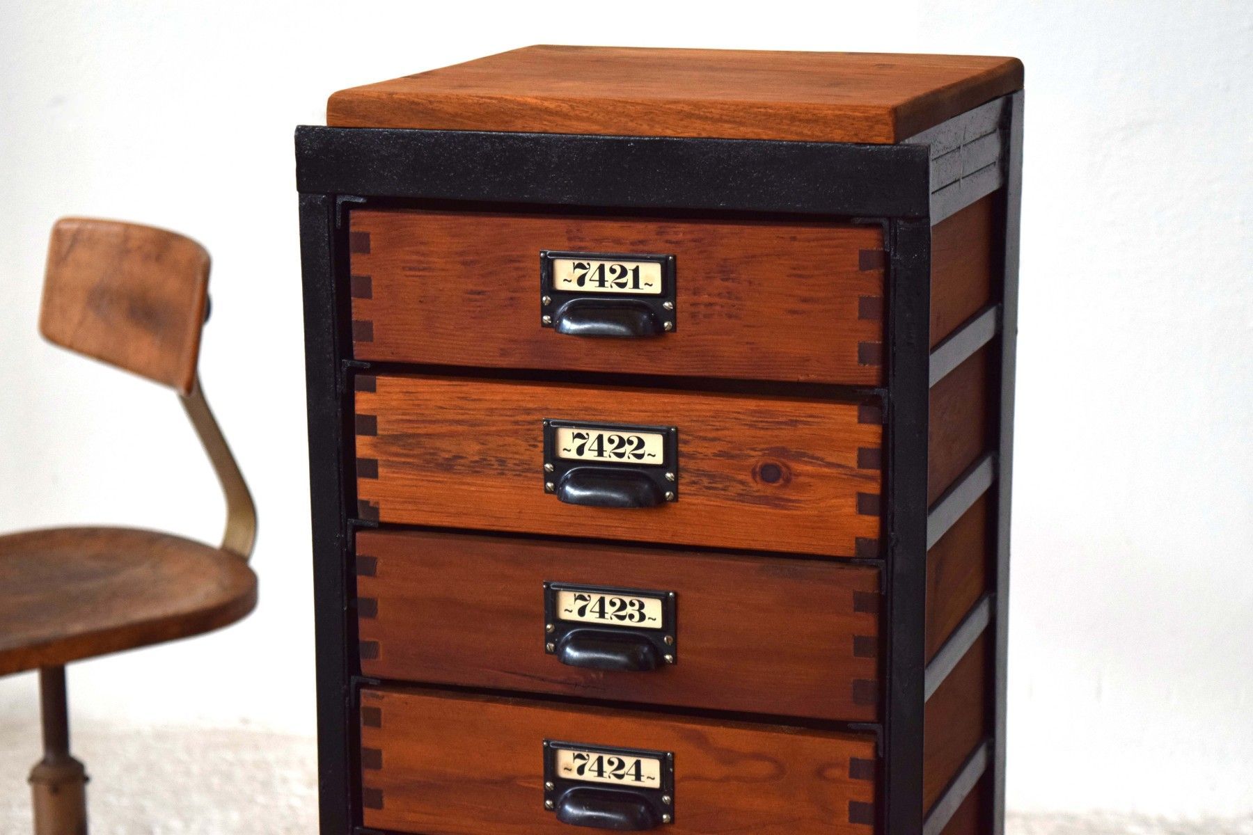 Schubladenschrank Metall Holz Antik Apothekerschrank Loft Fabrik Alt Schwarz Vintage