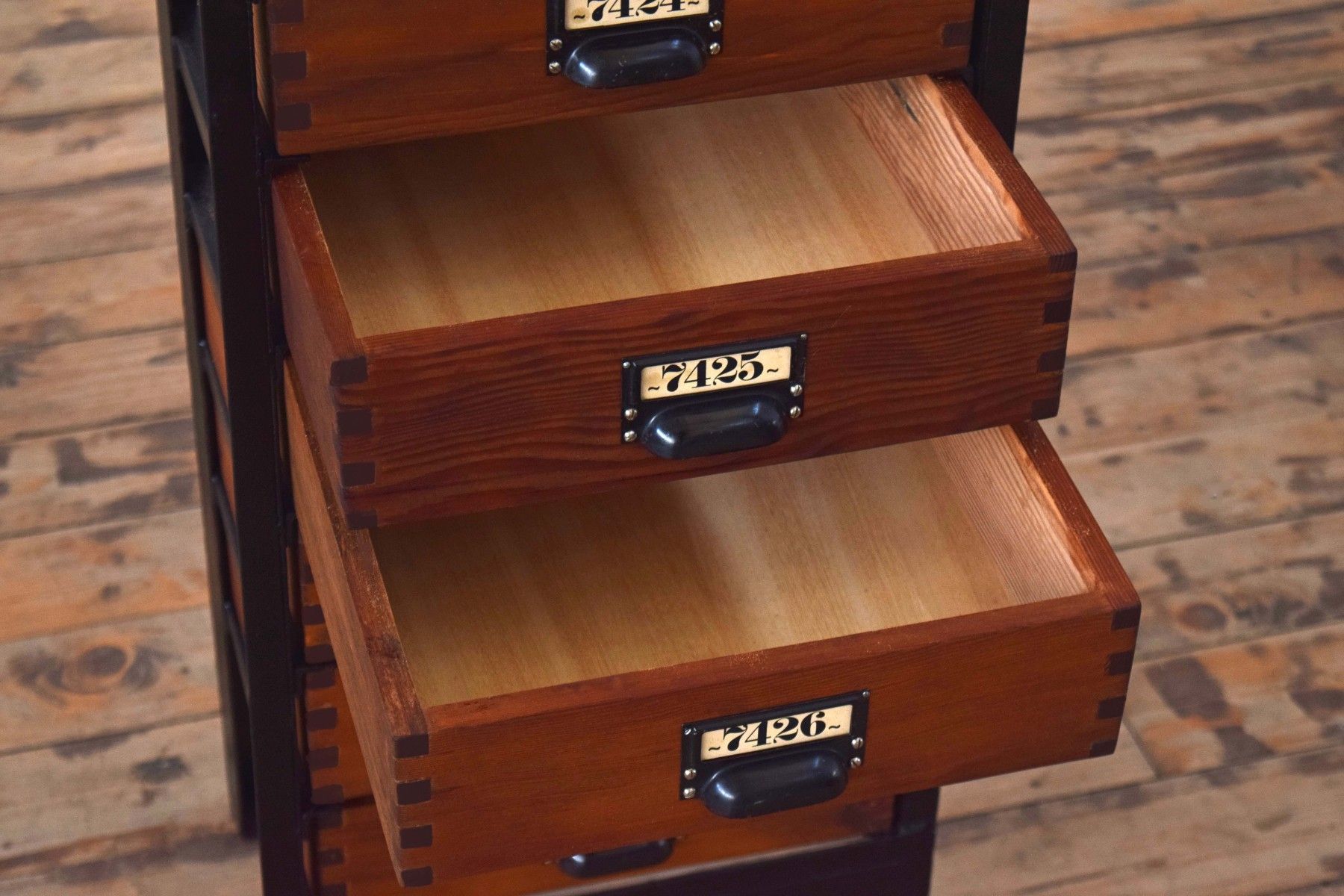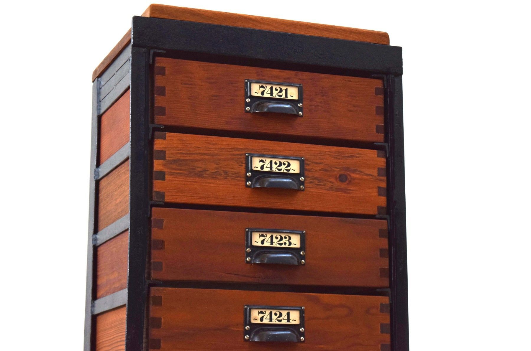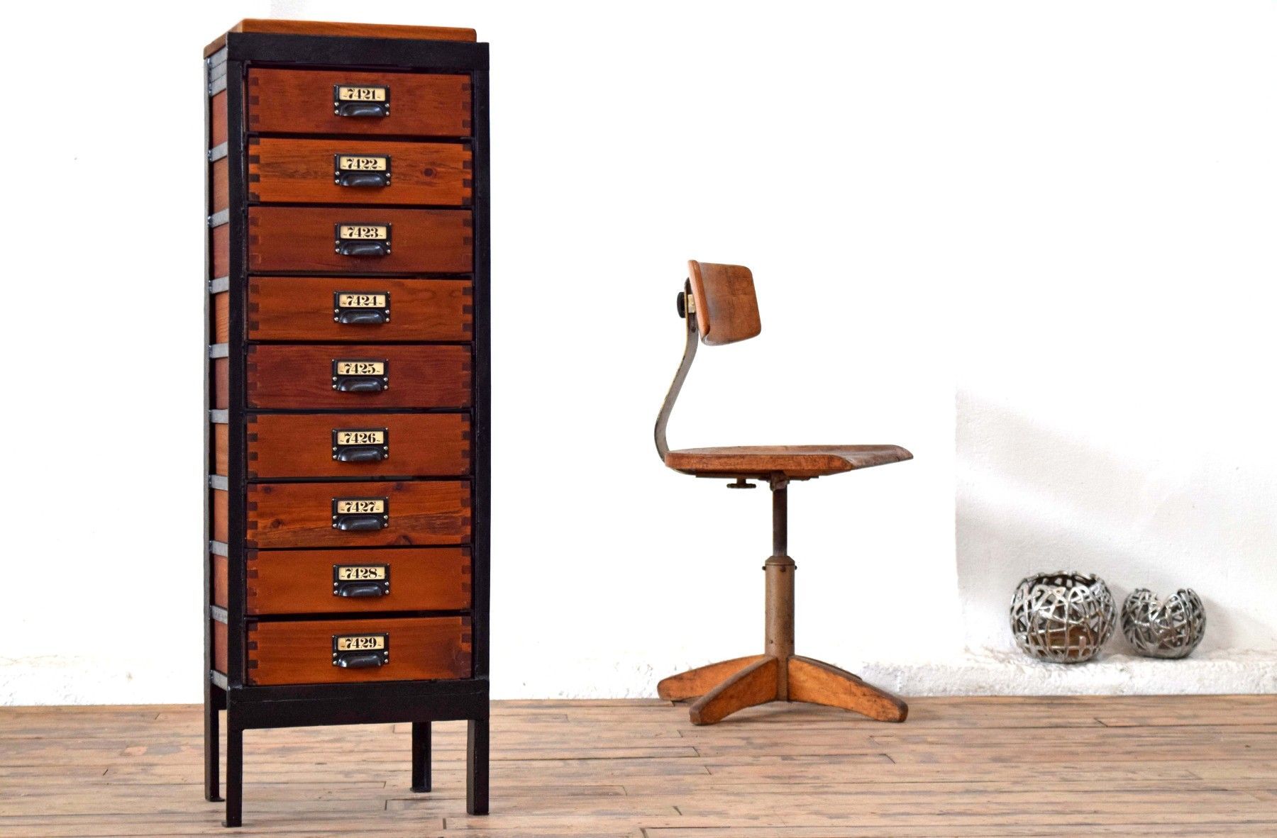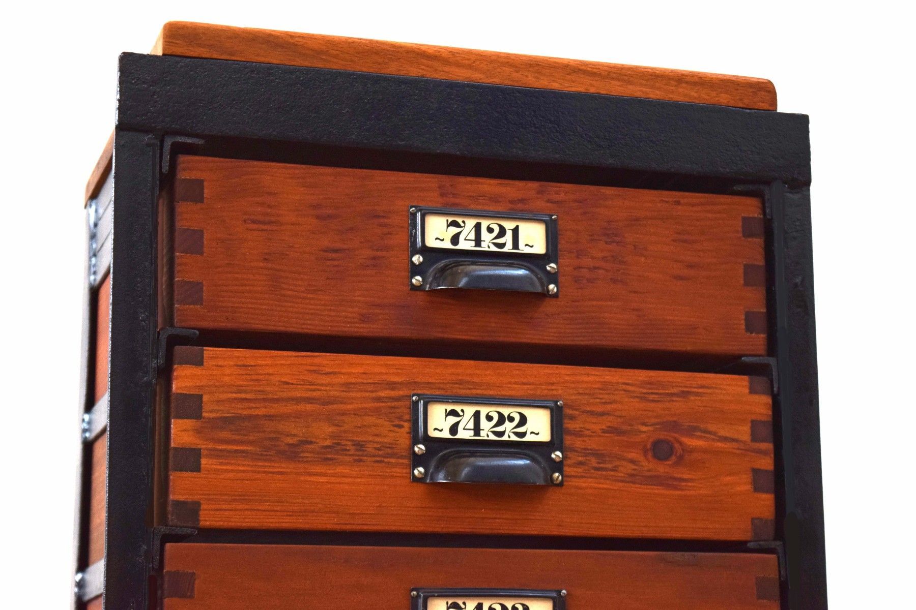 Schubladenschrank Metall Holz Antik Apothekerschrank Loft Fabrik Alt Schwarz Vintage