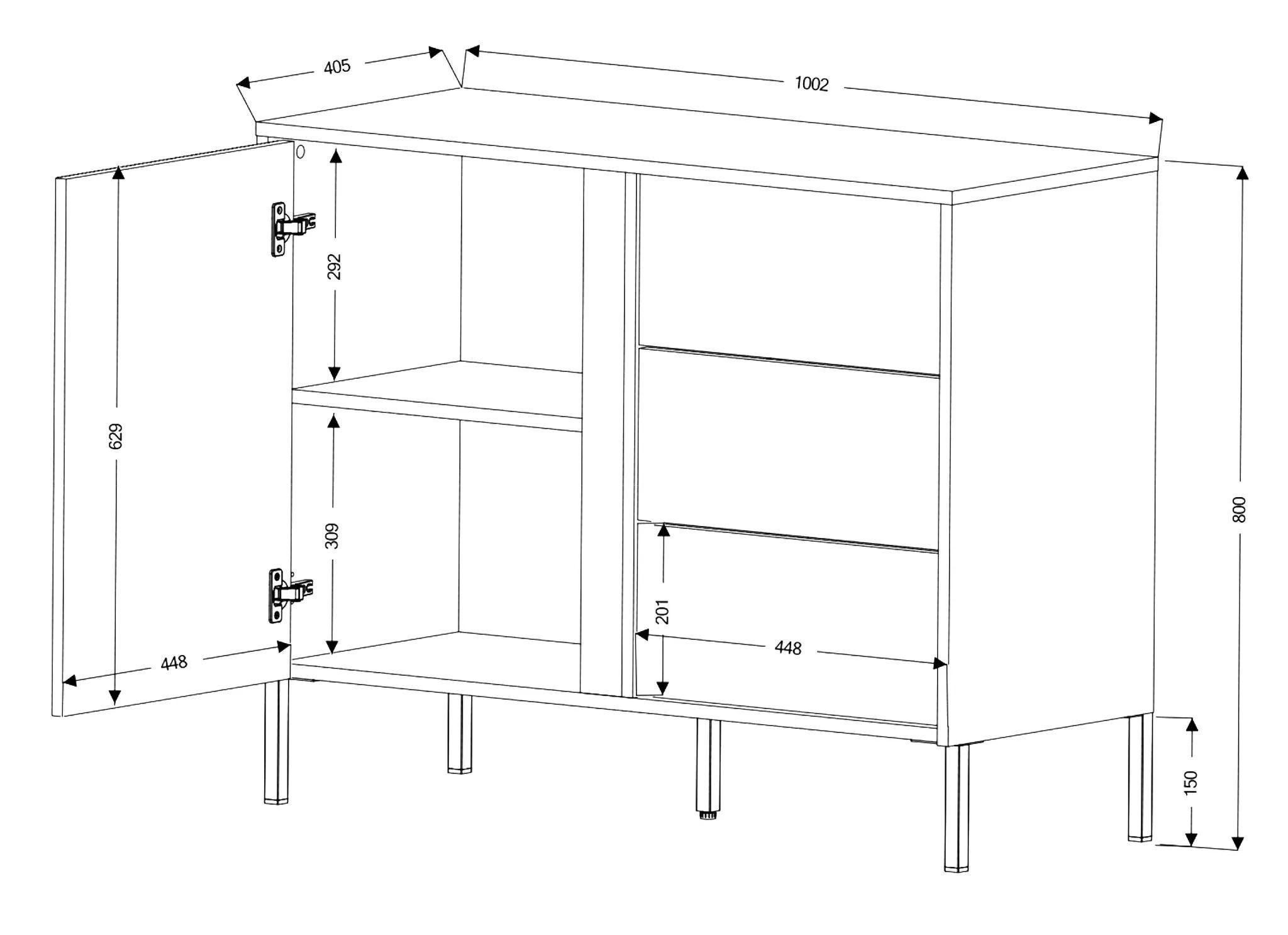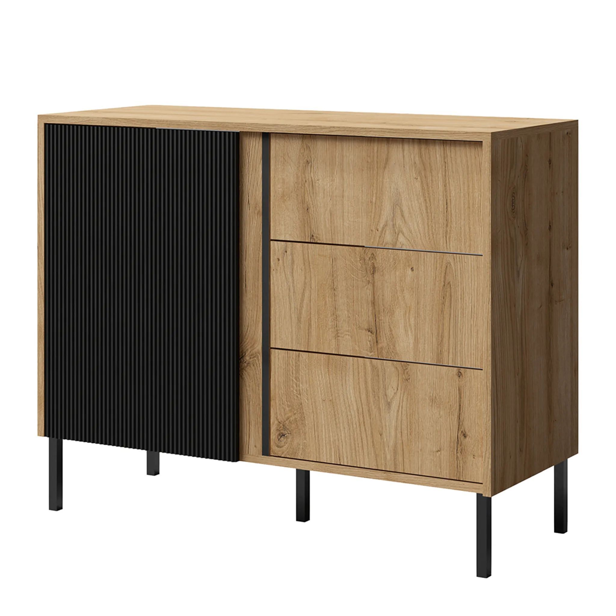 Schubladenschrank Mikasso 5 - 100 cm Breite, Modern in Eiche/Schwarz
