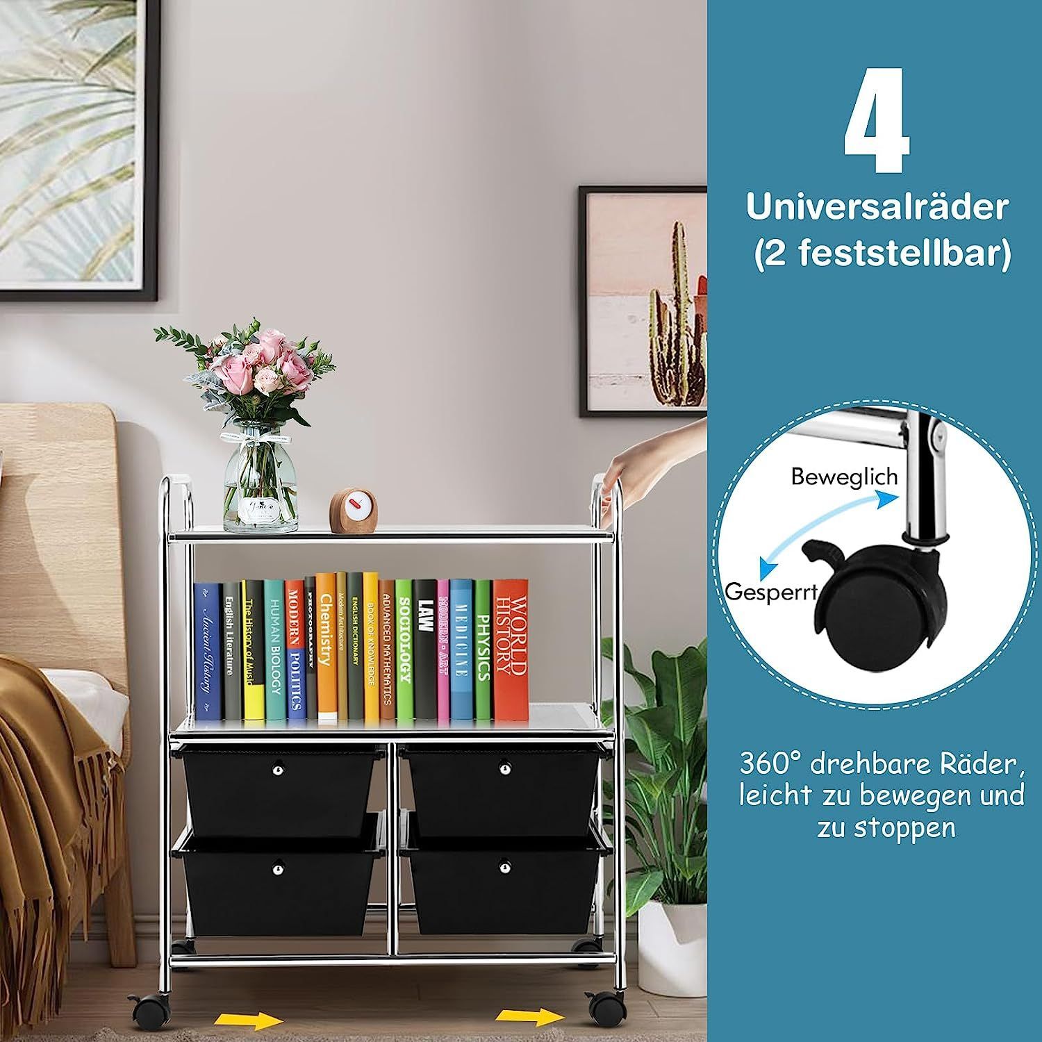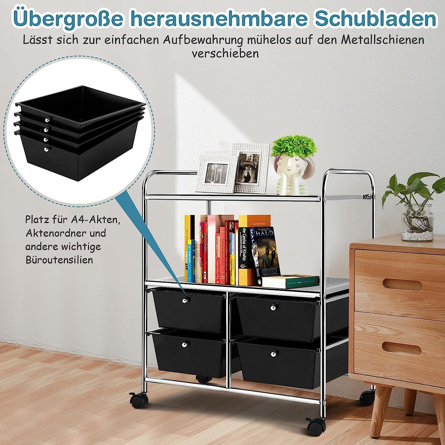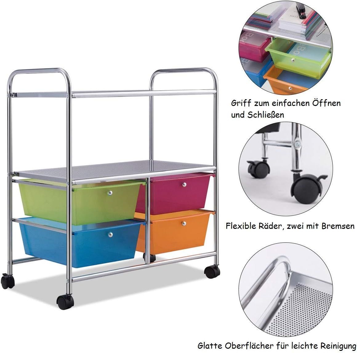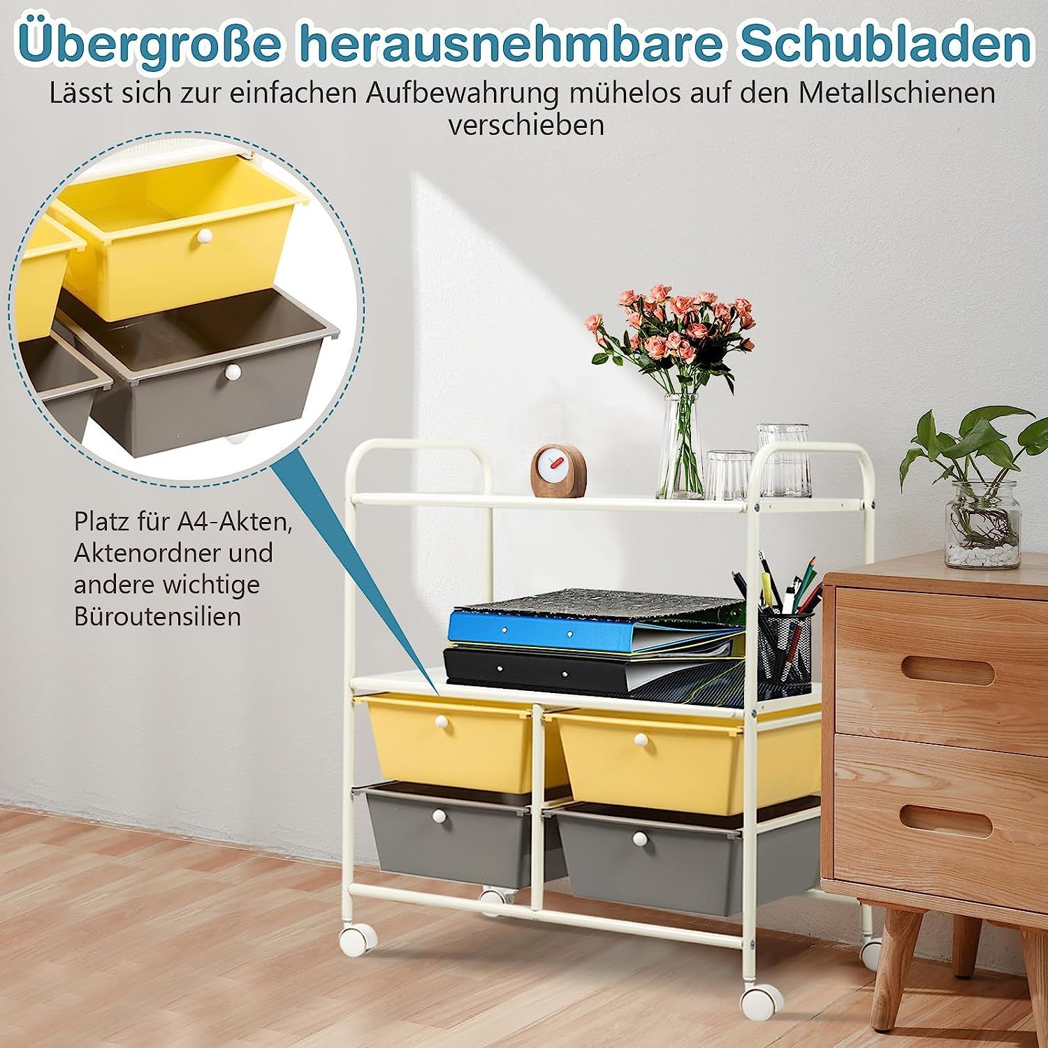 Schubladenwagen Rollcontainer mit Metallgestell und Ablageflächen, Rollwagen für Büro