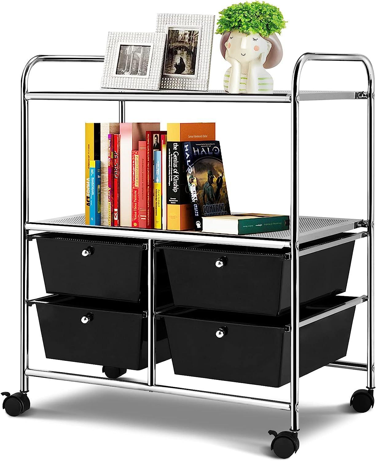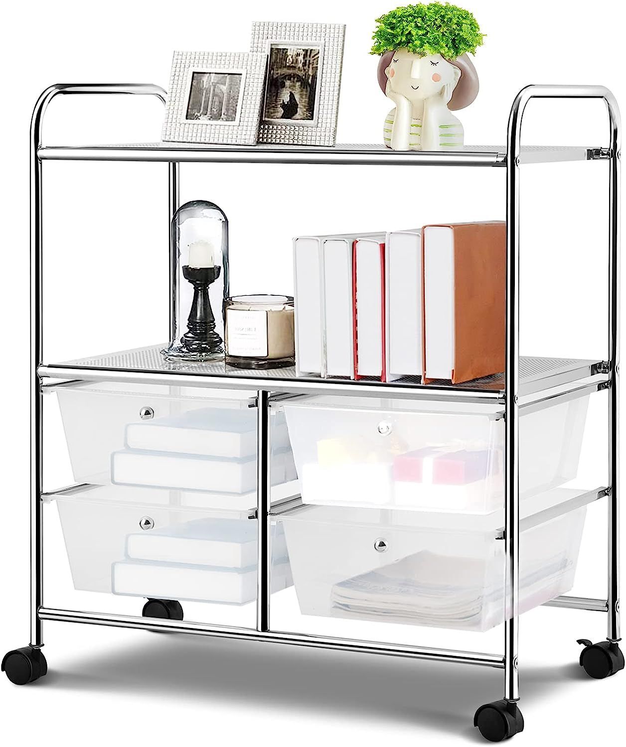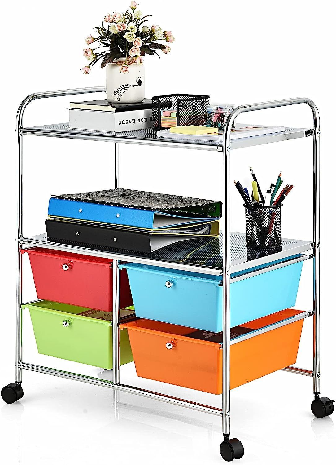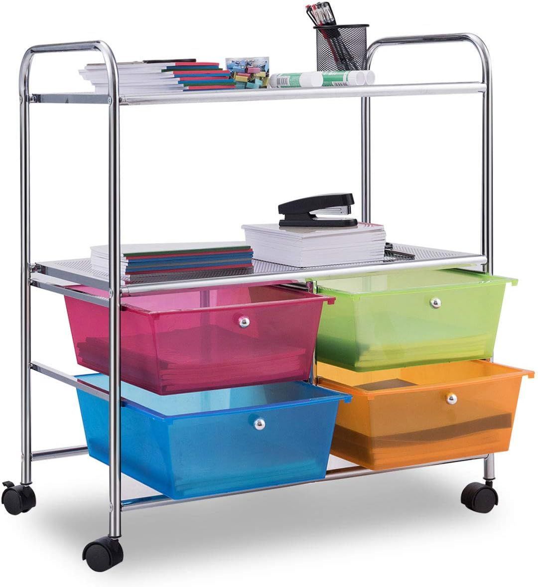 Schubladenwagen Rollcontainer mit Metallgestell und Ablageflächen, Rollwagen für Büro
