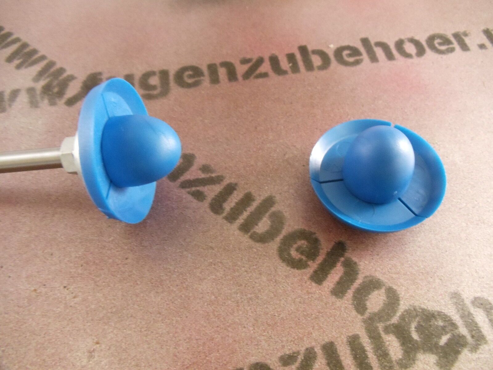 Bin seit 1998 im Bereich Fugentechnik (Silikon und Acryl) tätig! Seit 2013 beschränke ich mich nur noch auf den Verkauf von Fugenzubehör. Verkaufe 1Stück Schubteller mit Hut für handelsübliche Rohrpressen Beutelkolben mit Hut (blau) aus Kunststoff. Leicht aufzuschraubende Beutelkolben-Druckplatte fü