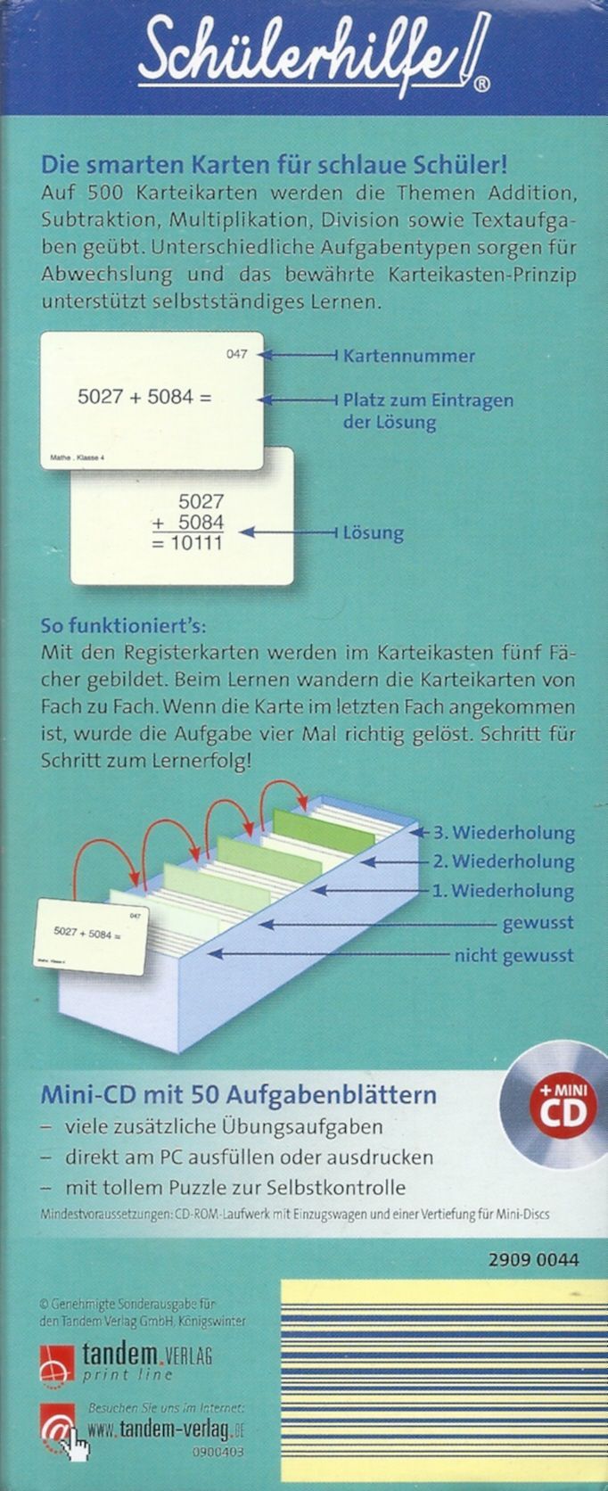 Schülerhilfe Mathematik kombinierte Aufgaben für die 4. Klasse 500 Karteikarten + CD