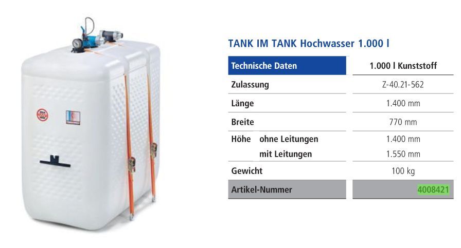 Schütz Heizöltank Hochwasser TiT-K 1000 Liter Öltank Spanngurt Tank im Tank