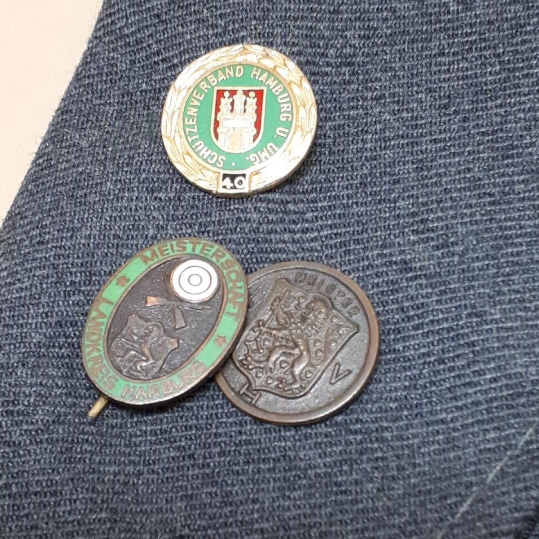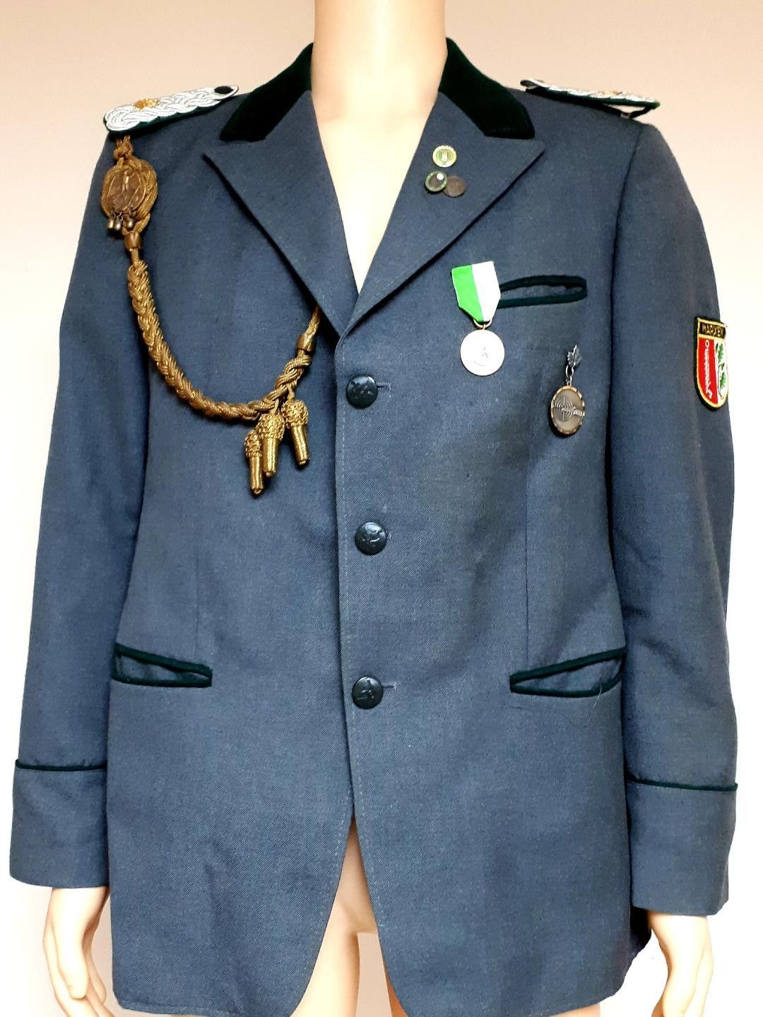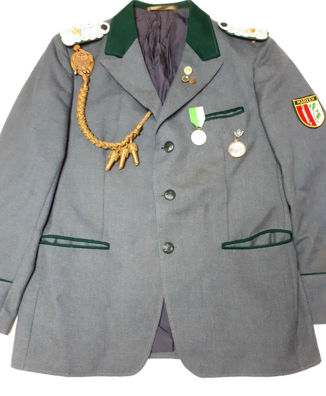 Schützensport Uniformjacke mit diversen Effekten K 24 * Maße: - ca. 76 cm Rückenlänge - ca. 112 cm Brustumfang - ca. 64 cm Ärmellänge Zustand: gut - gebraucht mit kleinen Tragespuren