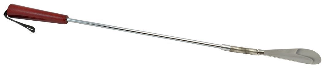 Schuhanzieher aus Metall mit Federelement mit Holzgriff und Aufhänger Länge:ca. 65 cm ideal für Reisen / platzsparend