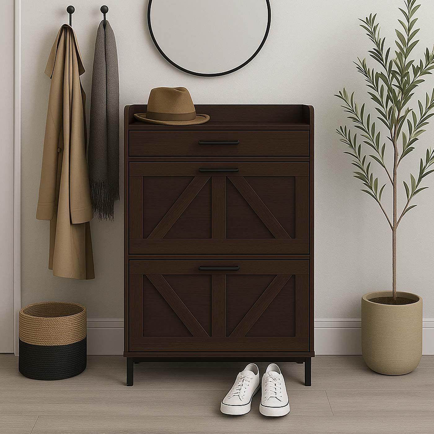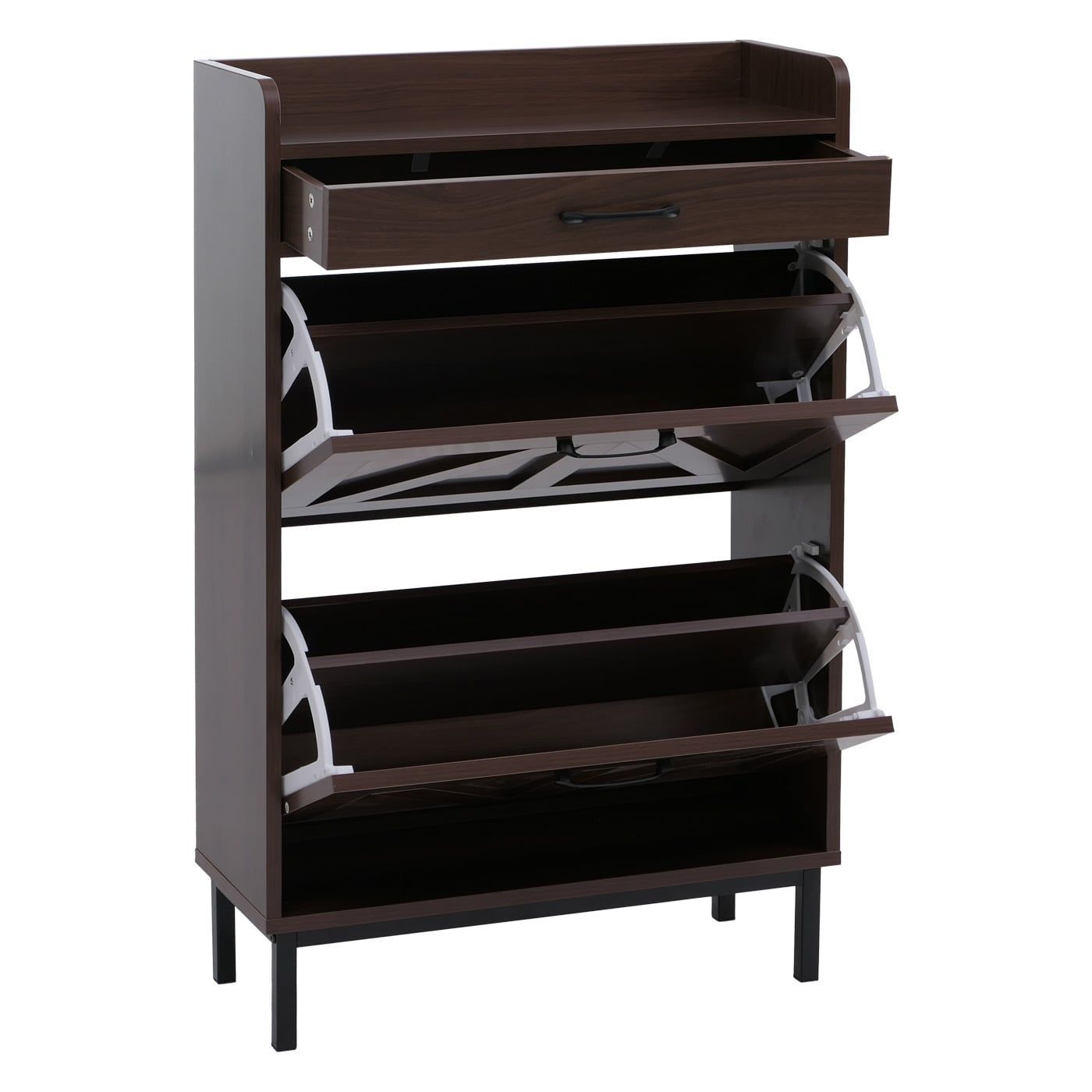 Mendler Schuhkipper HWC-P45, Schuhregal Schuhschrank, 2 Kippfächer Schublade MDF 95x60x24cm