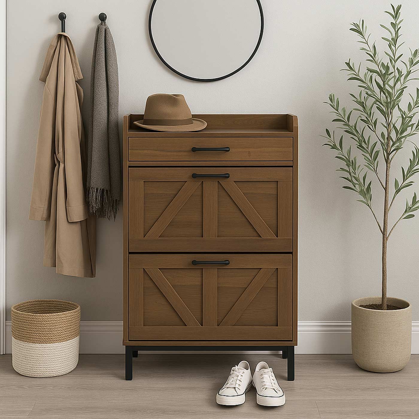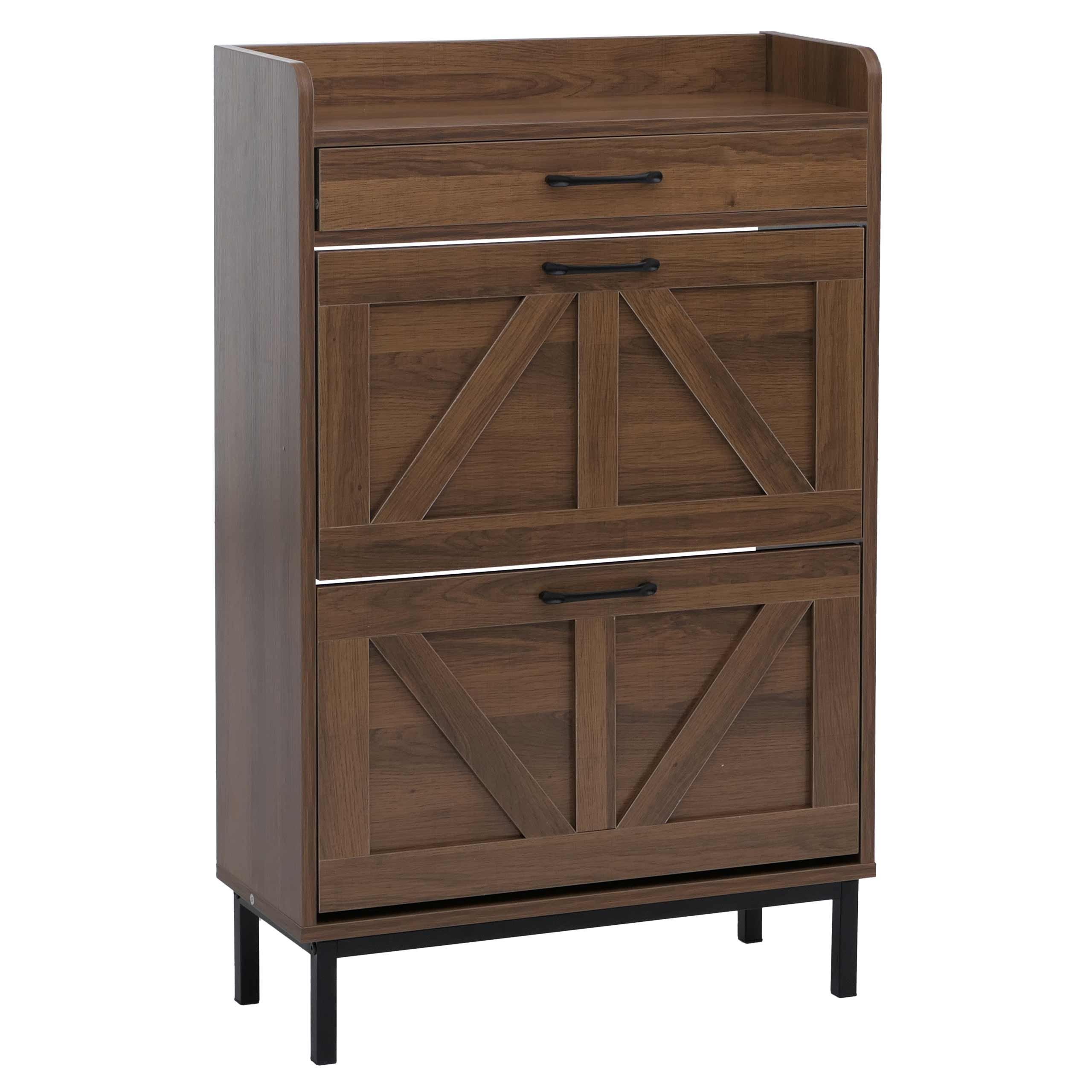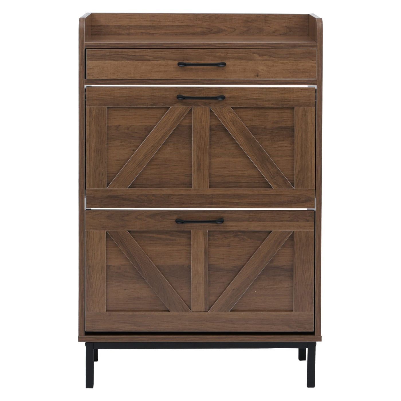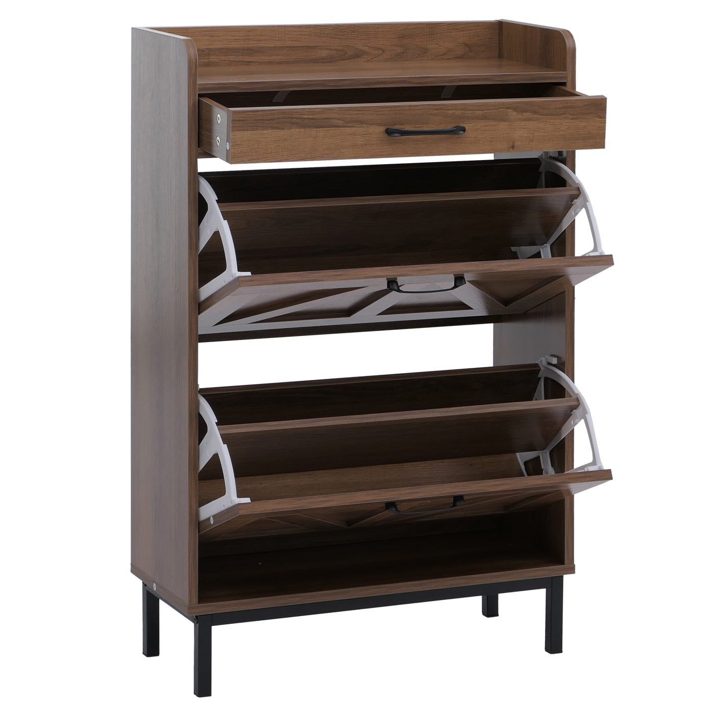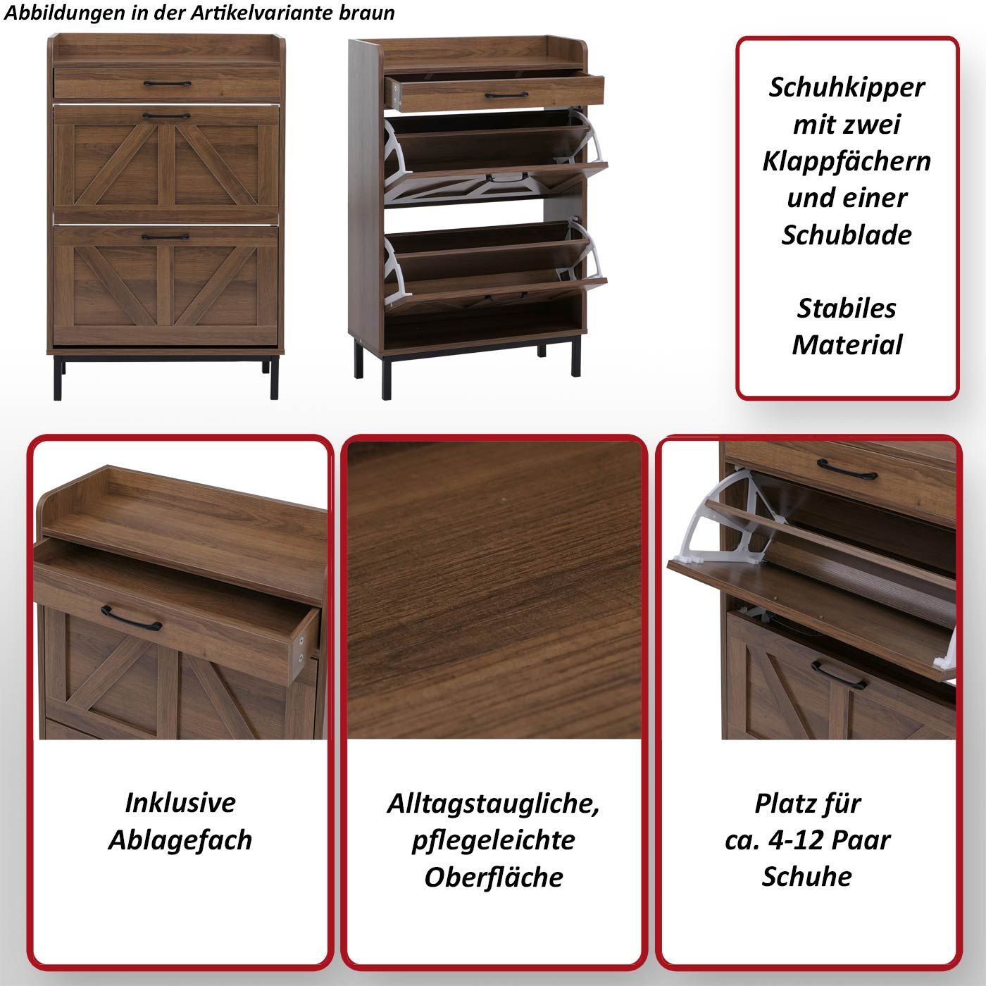 Mendler Schuhkipper HWC-P45, Schuhregal Schuhschrank, 2 Kippfächer Schublade MDF 95x60x24cm