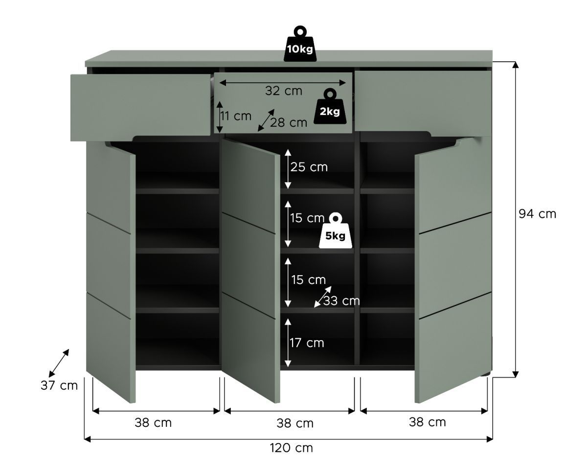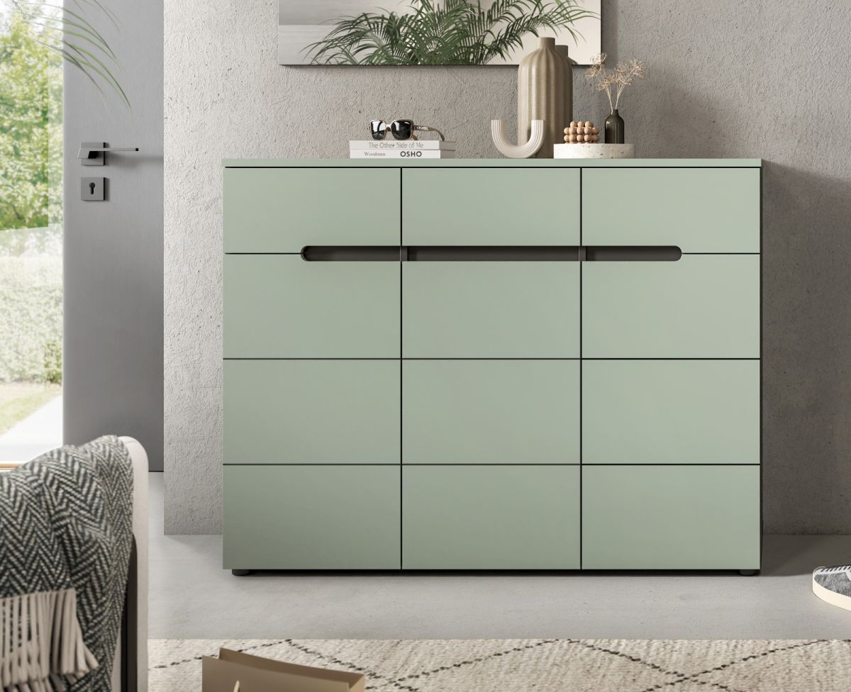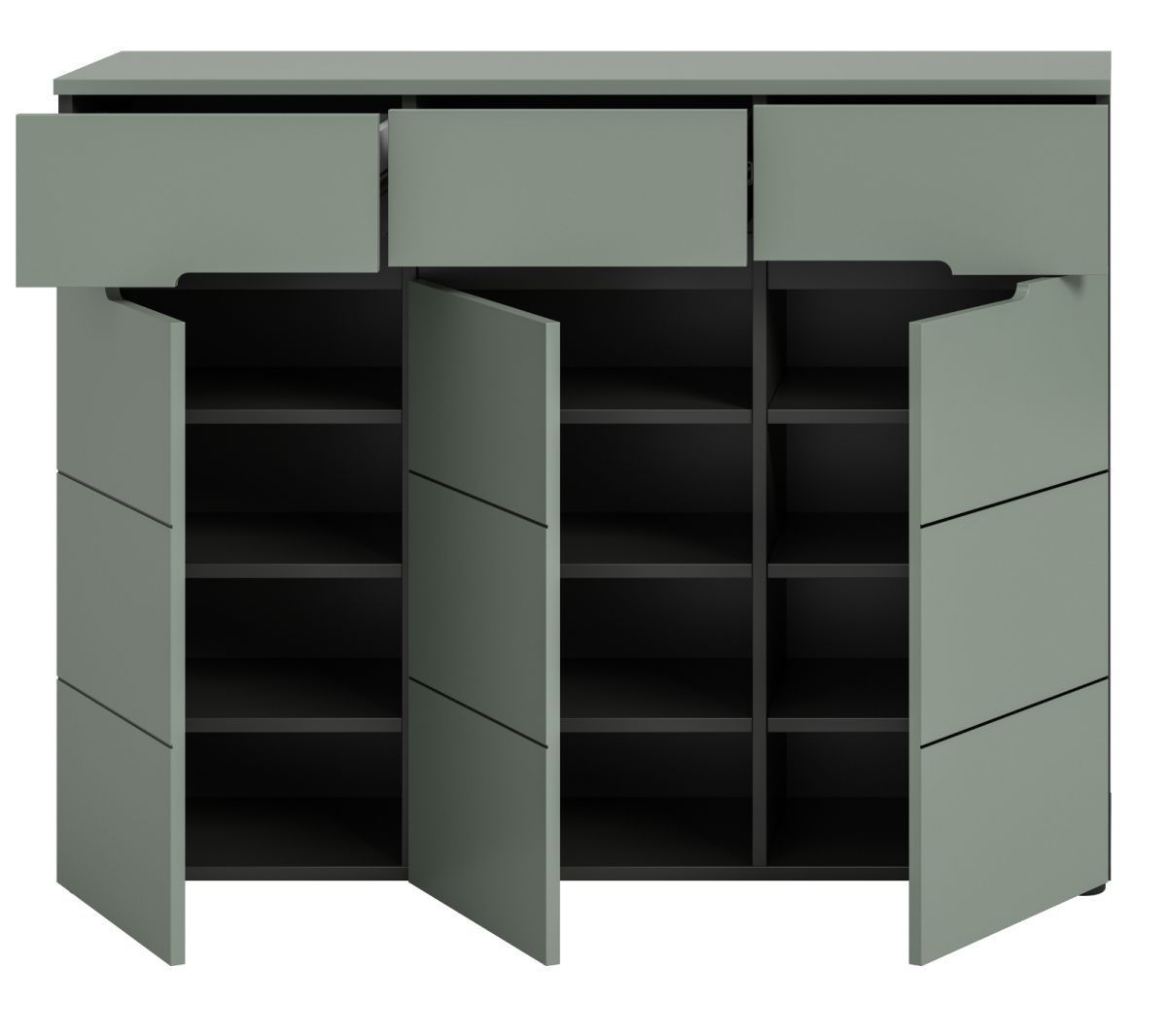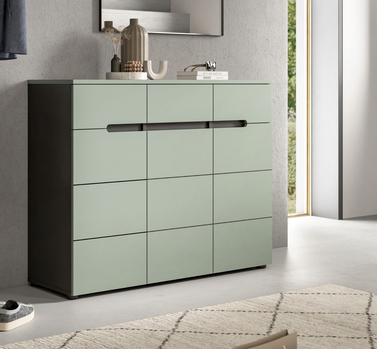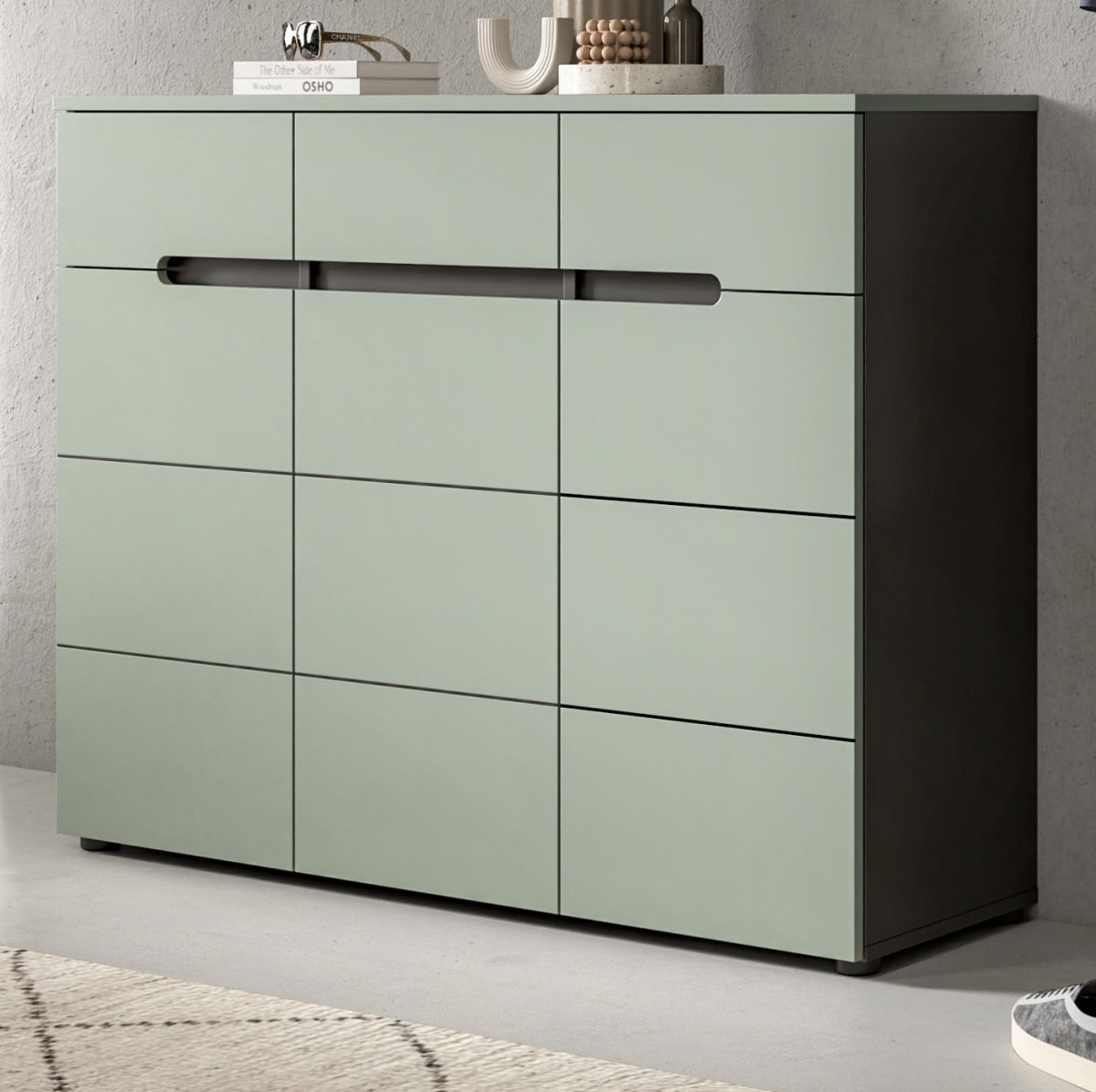 Schuhkommode "Cooper" Salbei Basalt Grau Flurkommode 12 Fächer 120x94 cm, Soft-Close
