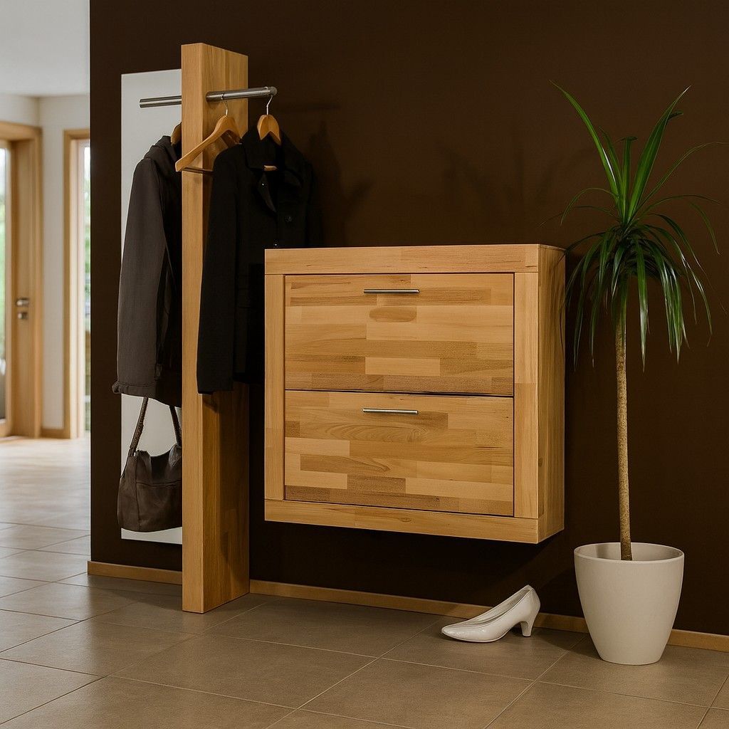Schuhkommode Kernbuche teilmassiv Hängeschuhschrank Schuhkorb #515