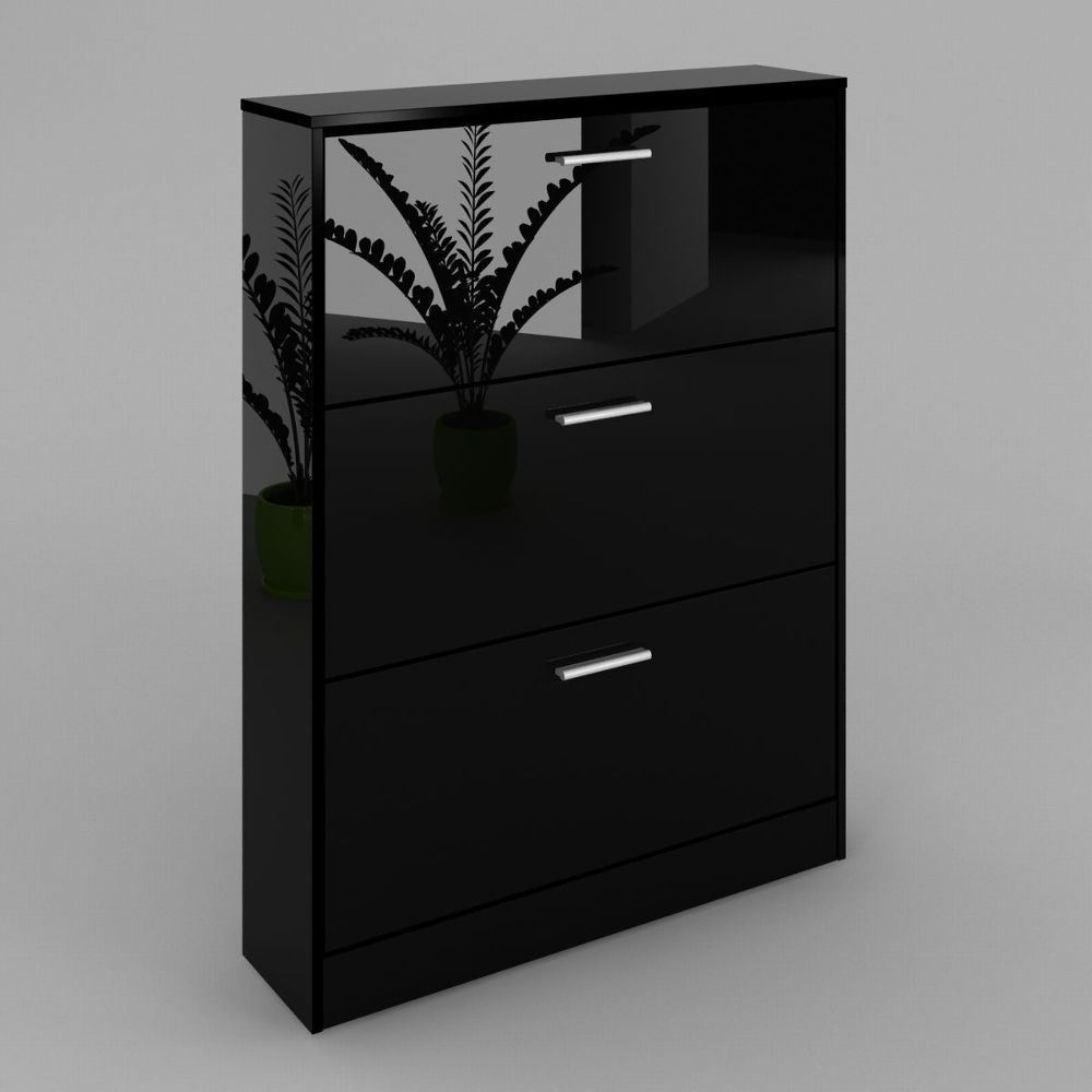 Schuhschrank Bari 90 cm in schwarz- Hochglanz Tiefe 27 cm