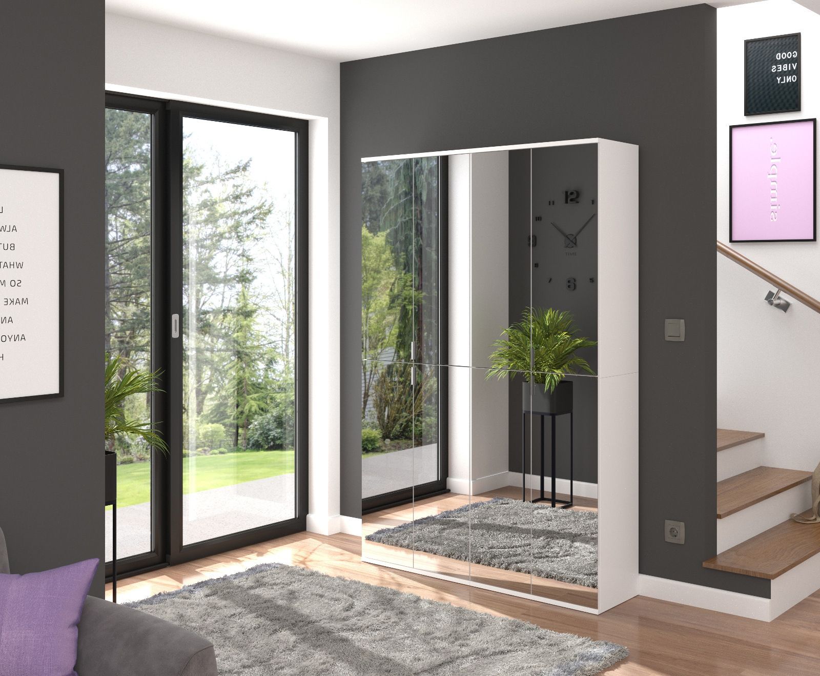 Schuhschrank Garderobenschrank weiß Spiegel erweiterbar 6 Fächer 2 Türen SystemX