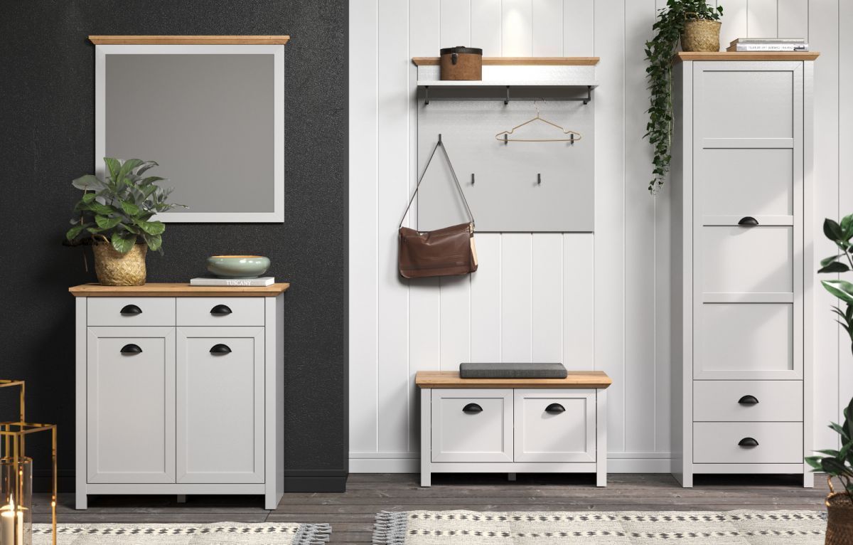 trendteam Schuhschrank Hochschrank Landhaus Garderobe Schrank grau Eiche Landside 65 x 201 cm