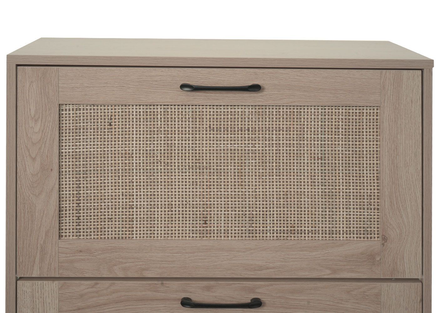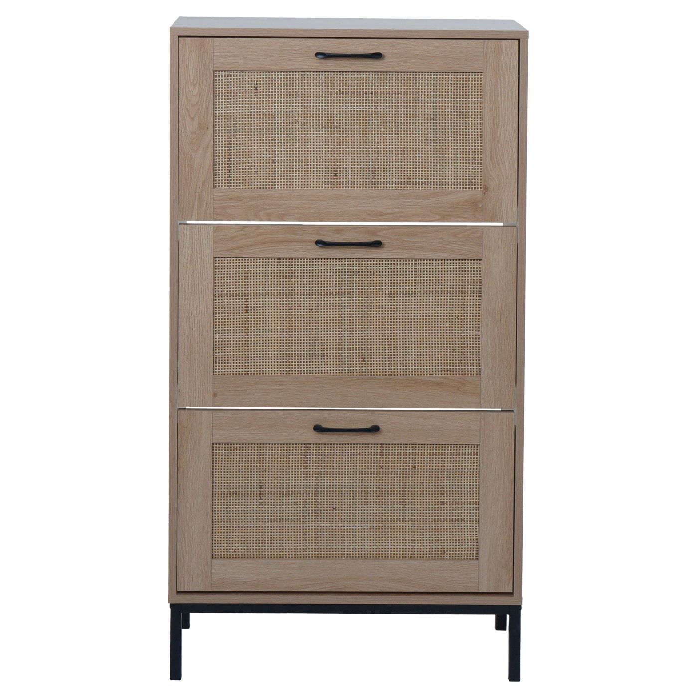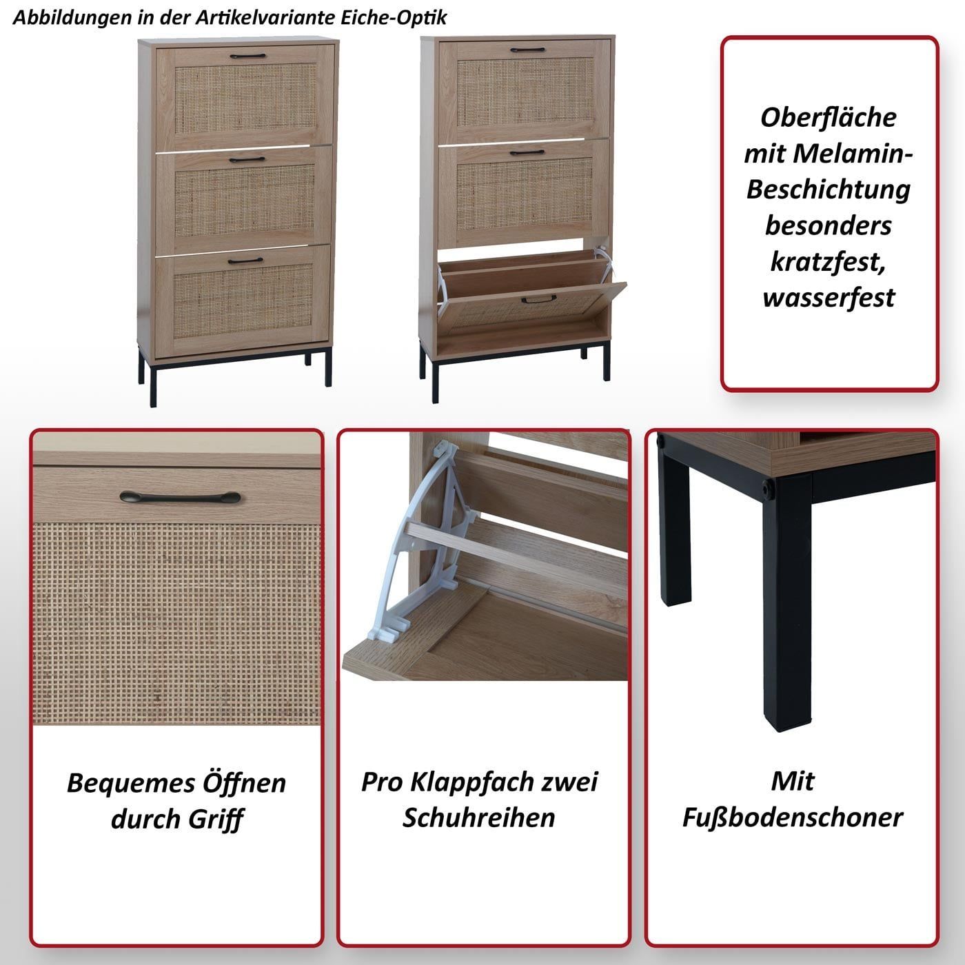 Mendler Schuhschrank HWC-N92, Schuhkipper, 3 Fächer Rattanfront Melamin, 126x63x24cm