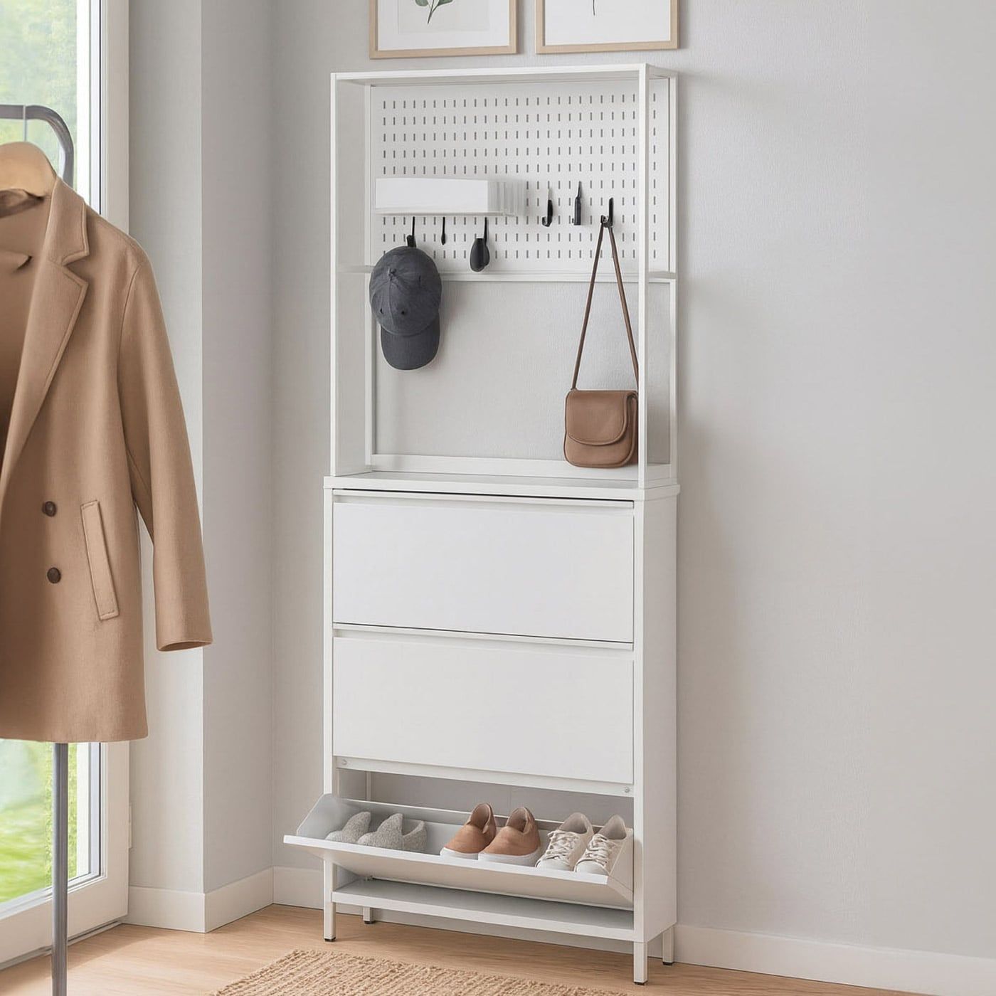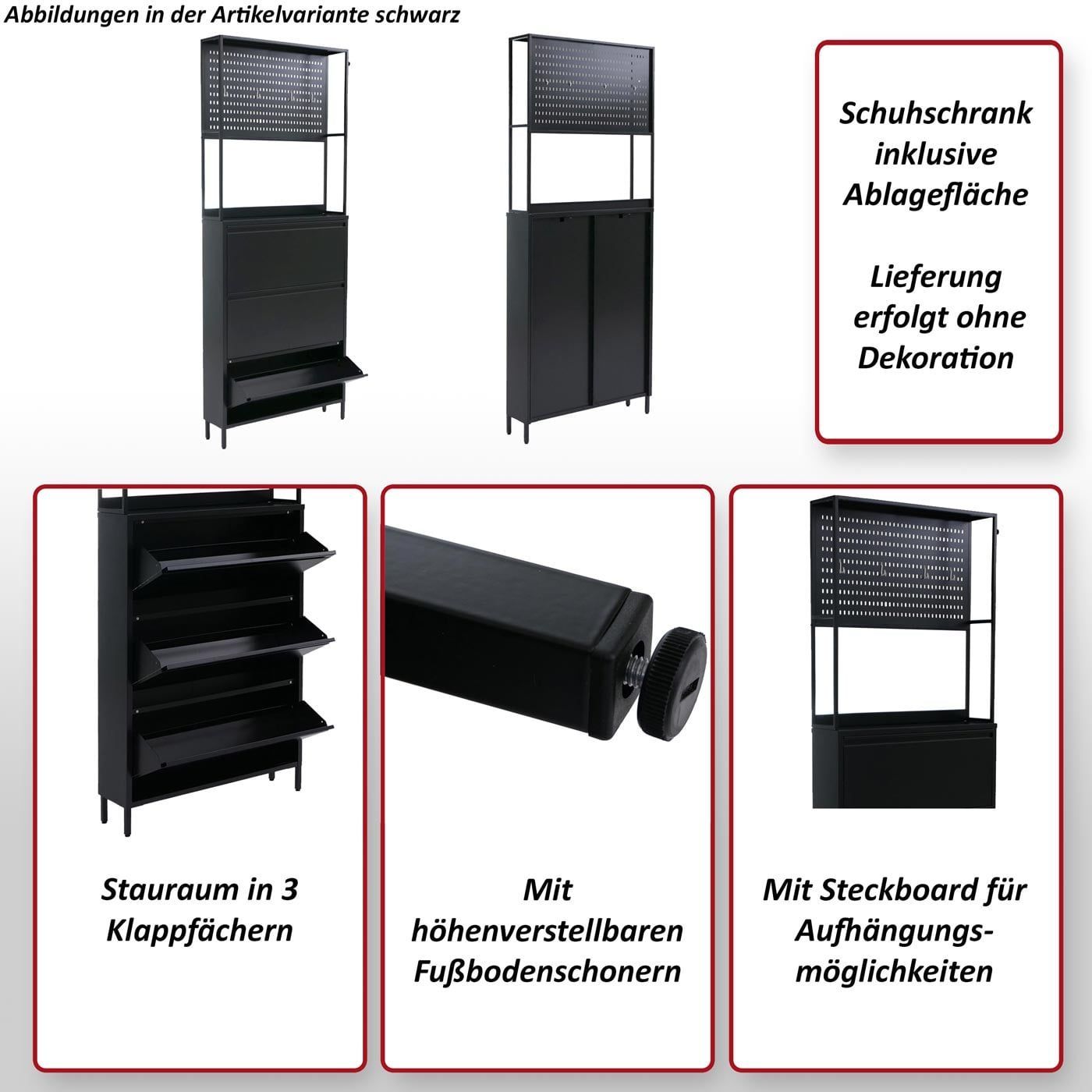Mendler Schuhschrank HWC-O86, Schuhregal Schuhkipper, 3 Kippfächer Metall 201x80x20cm