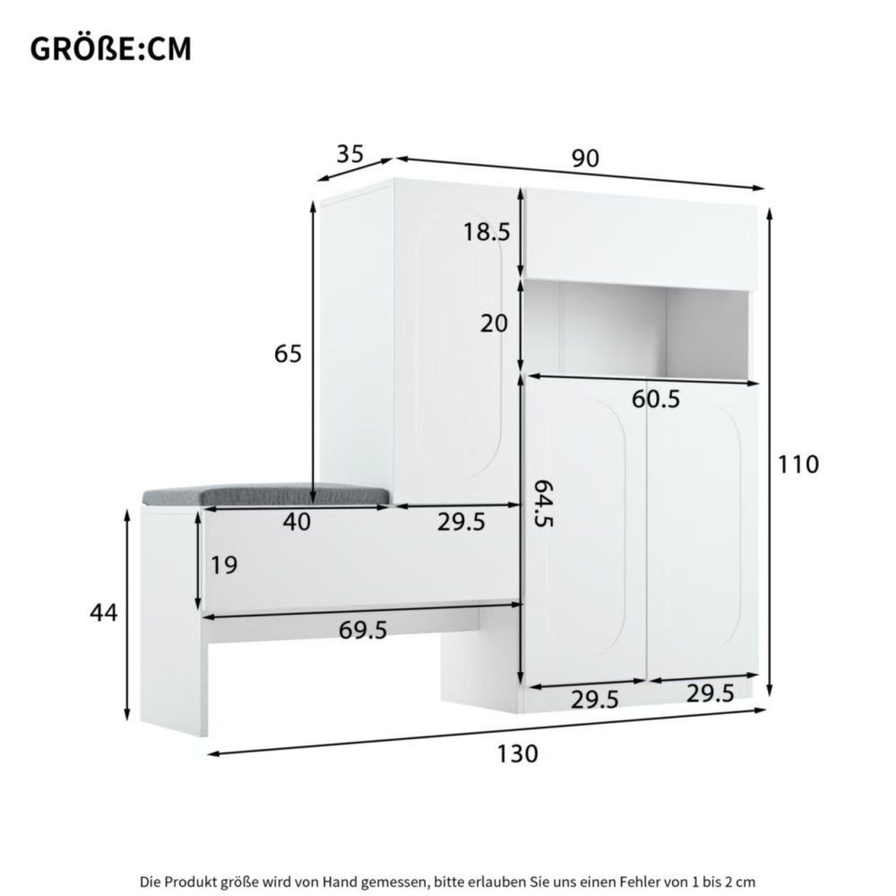 Flurgarderobe Schuhschrank Wandpaneel HUGO V mit Sitzbank und Polster