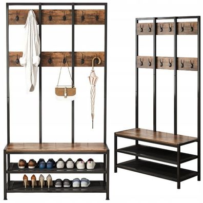 Flurgarderobe Schuhschrank Wandpaneel PEDRO VI mit Lamellen und Sitzbank