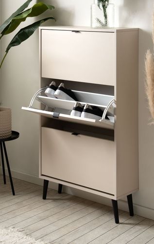 Schuhschrank Schuhkipper 3 Kipper bis 18 Paar in samt Schuhkommode Aldan 70 x 125 cm