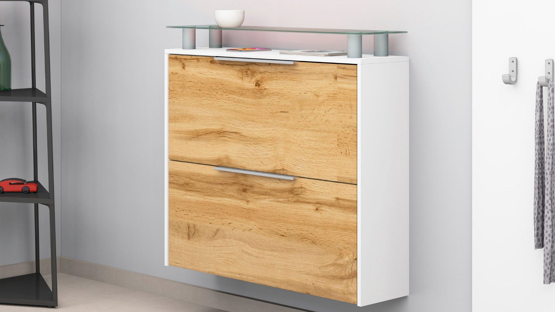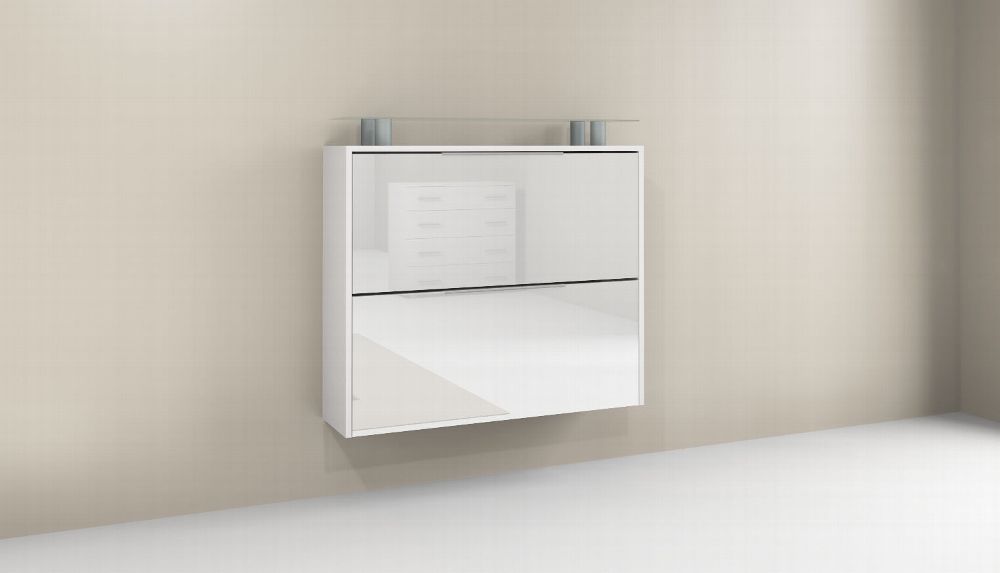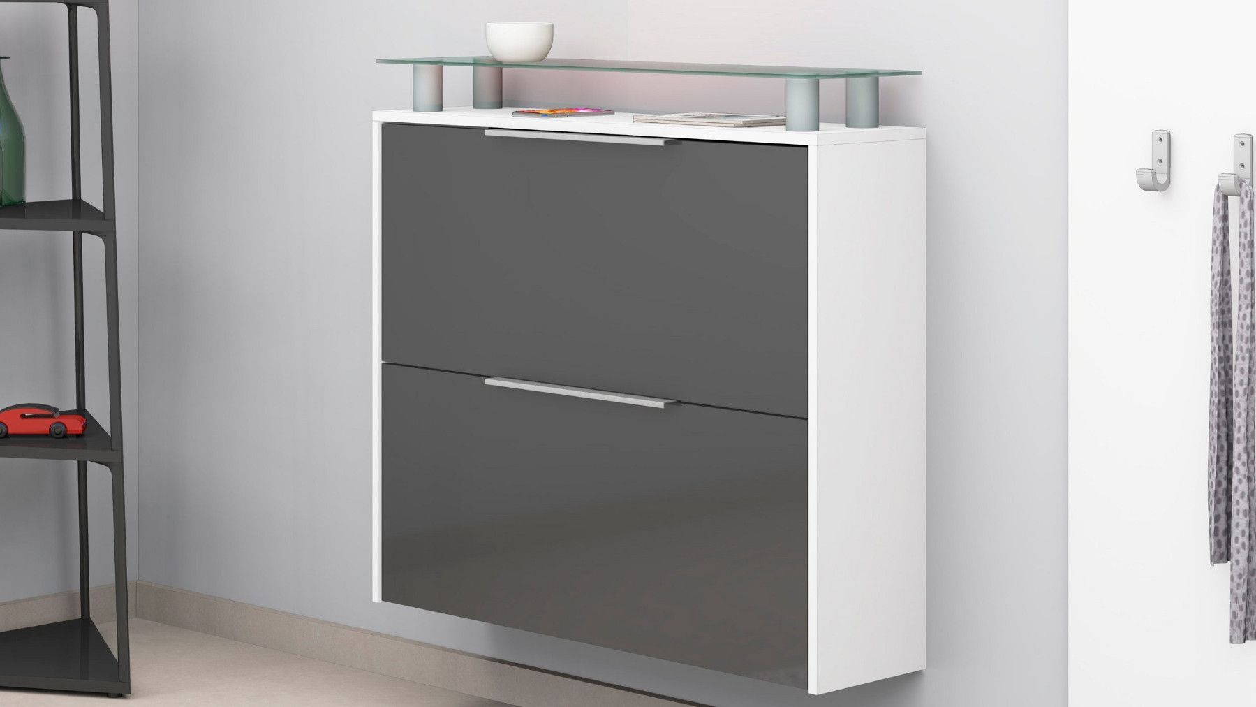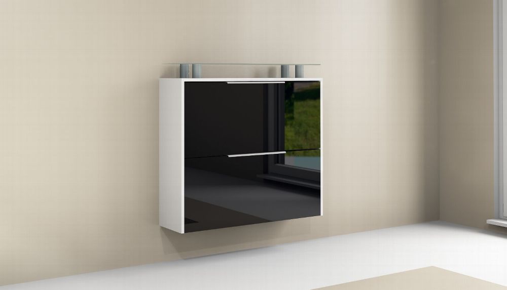 Schuhschrank Schuhkipper Hängekommode Regal Flur Garderobe Weiß Hochglanz Rena