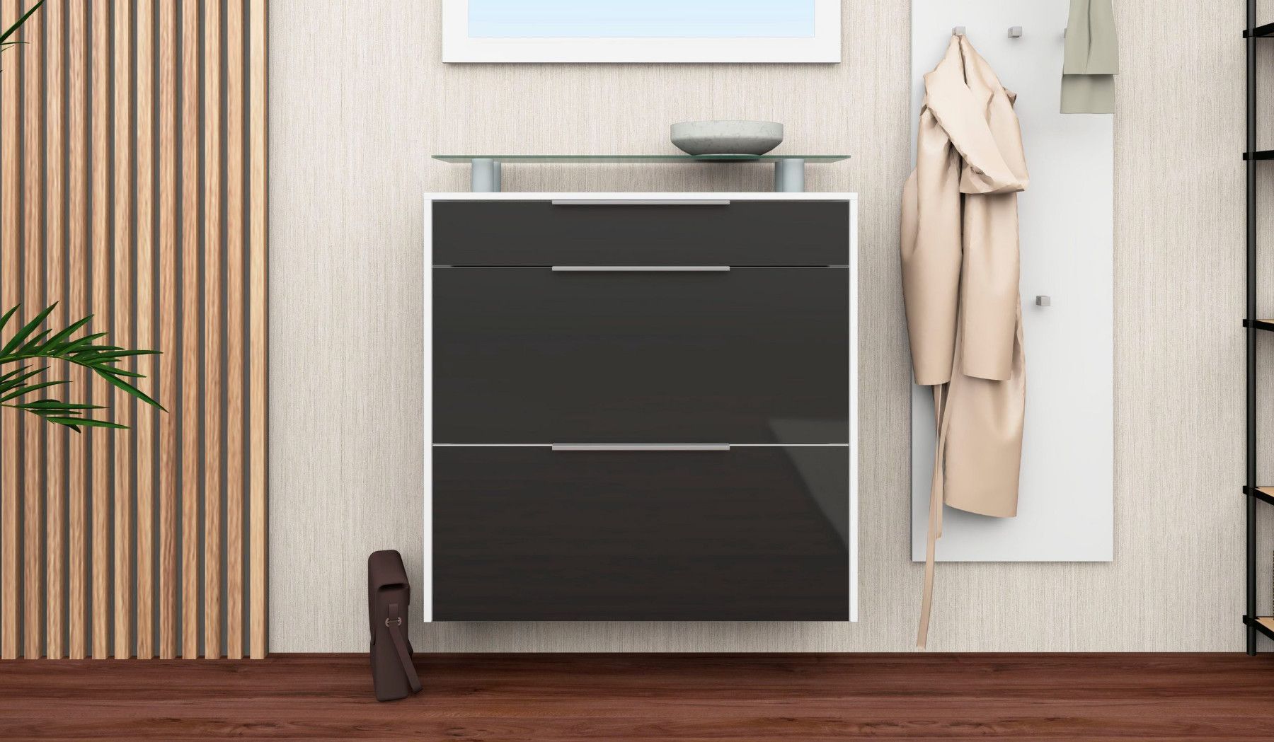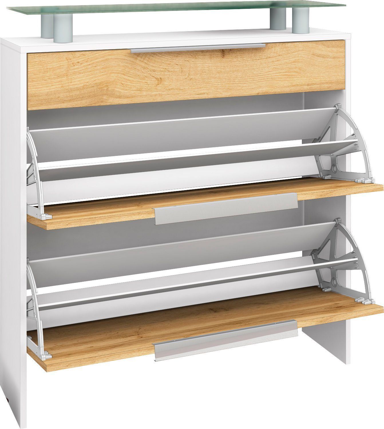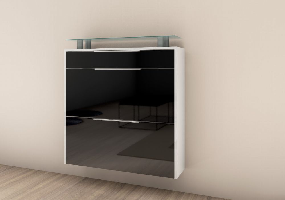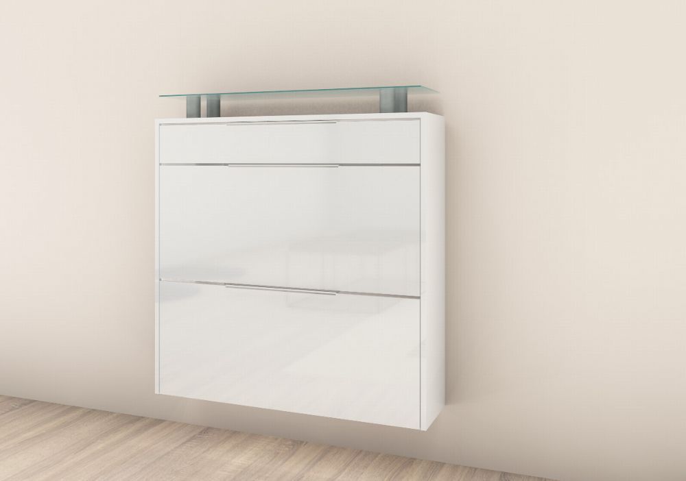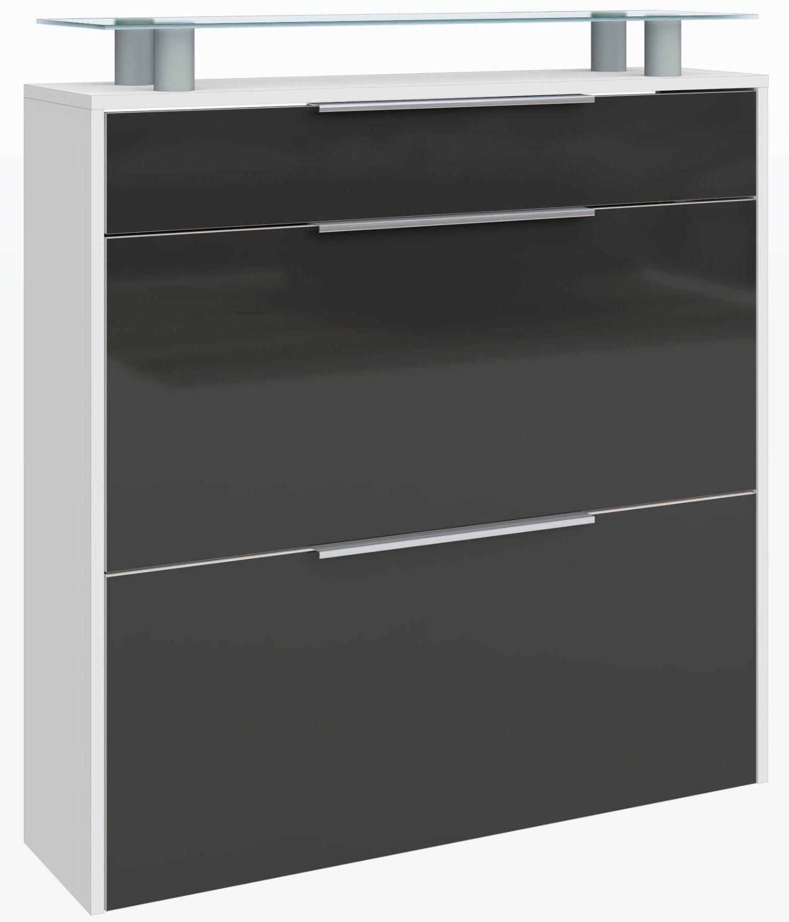 Schuhschrank Schuhkipper Schuhregal Flur Regal Schrank Weiß Hochglanz - Oliva 2