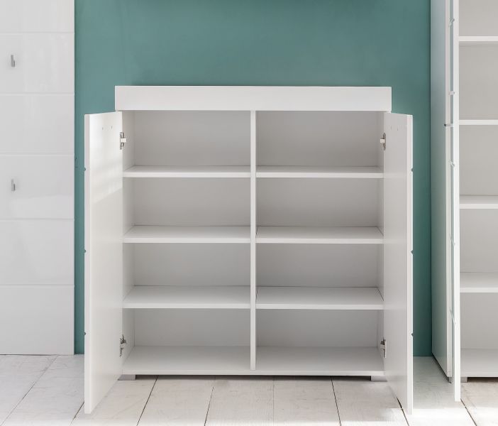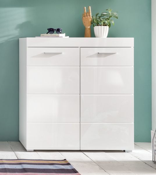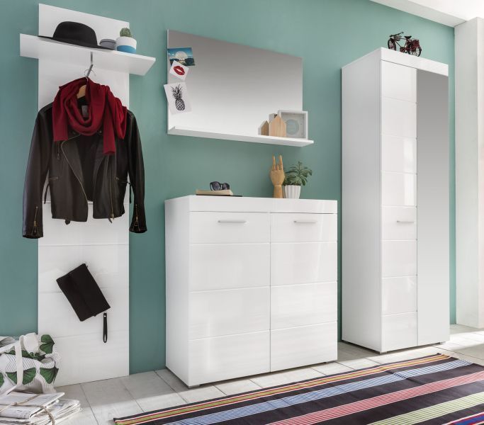 Trendteam Schuhschrank Schuhkommode in weiß Hochglanz Flur Garderobe Dielen Schrank Amanda