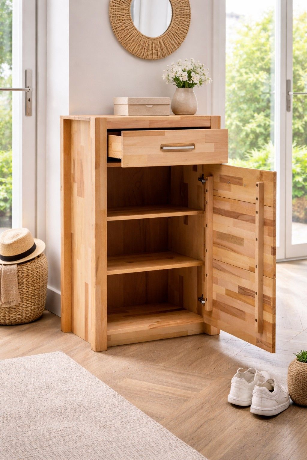 Schukastenkommode Anrichte Kernbuche Griffe Scharniere Metall #4433