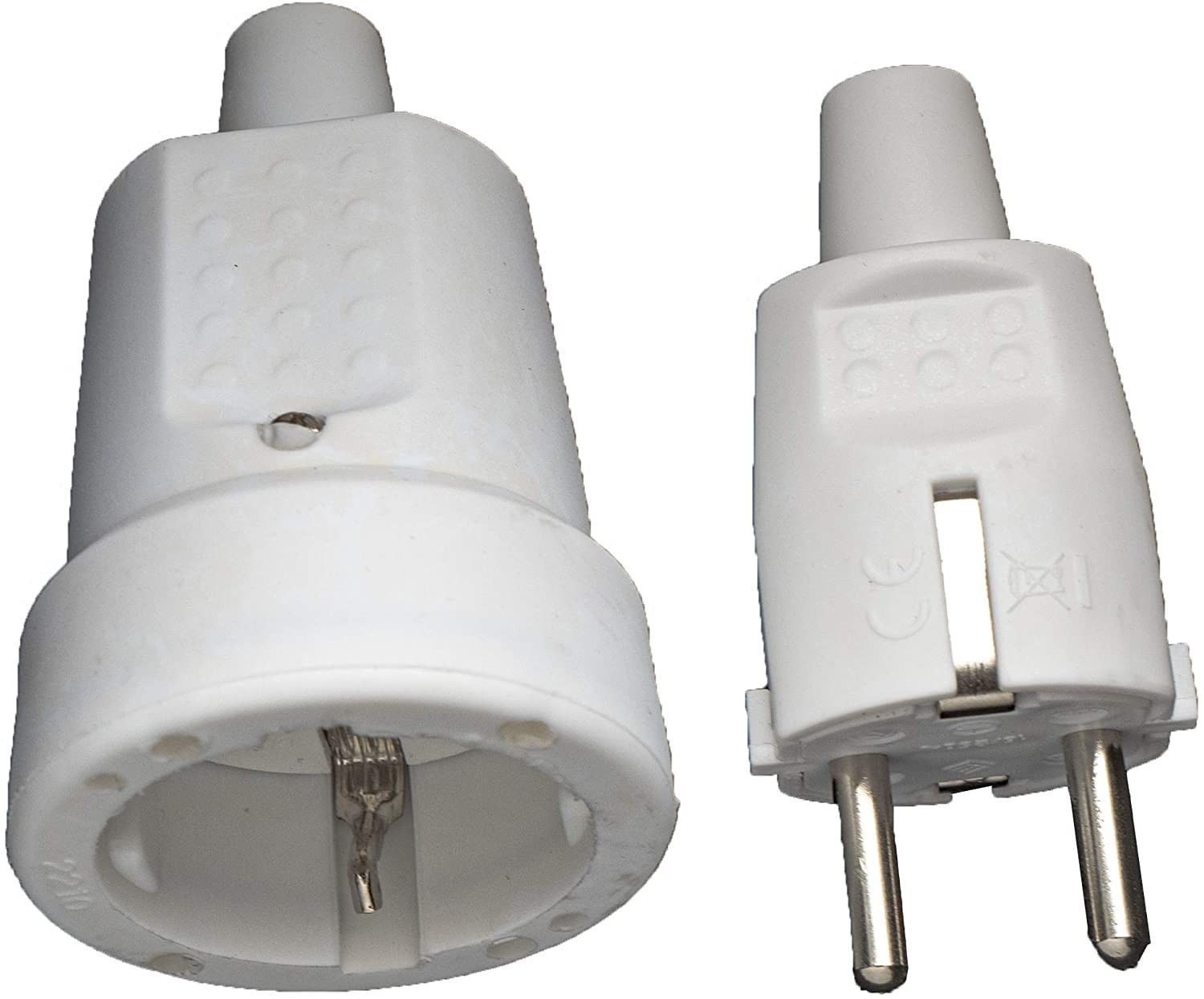 Schuko Gummistecker Stecker und Kupplung Weiss 230V IP44 Gummisteckverbindungs-Set