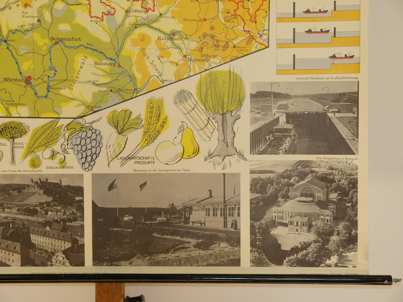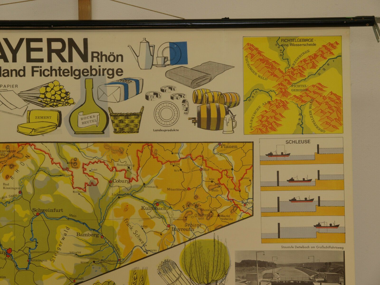 Schul- Wandkarte Bildkarte Bayern Rhön Mainland Fichtelgebirge 140x97cm 1965