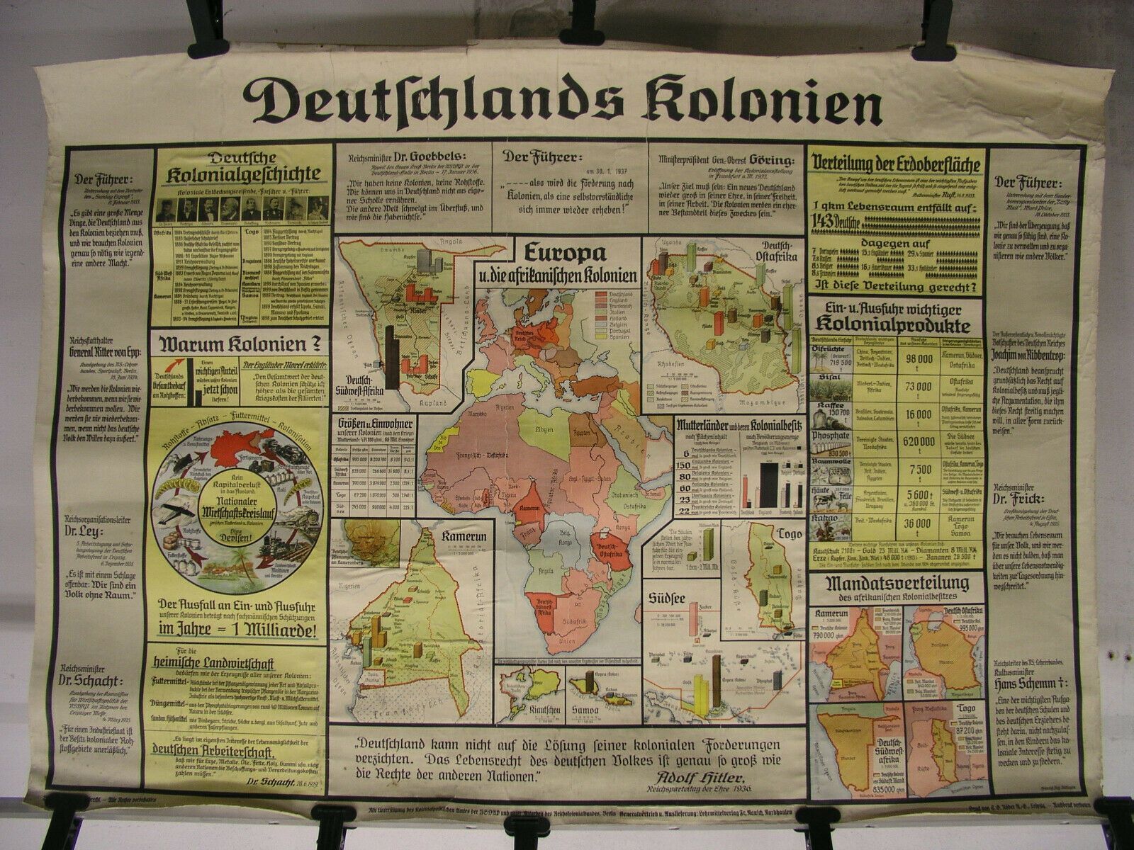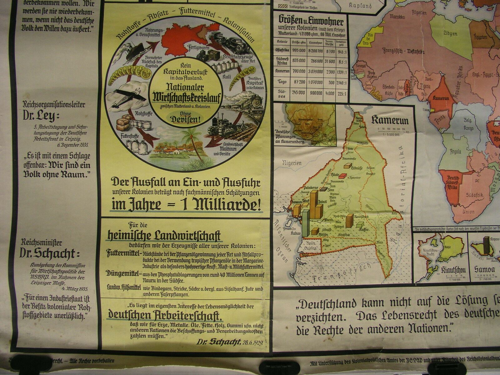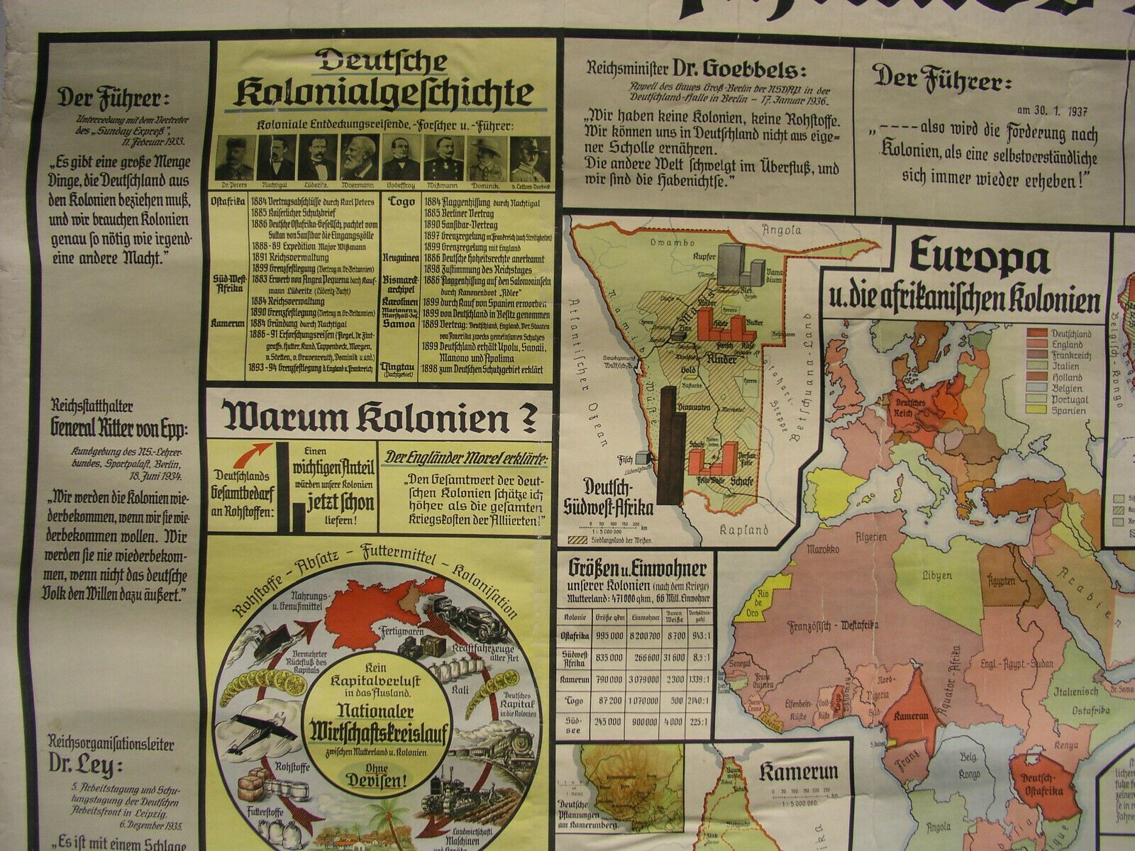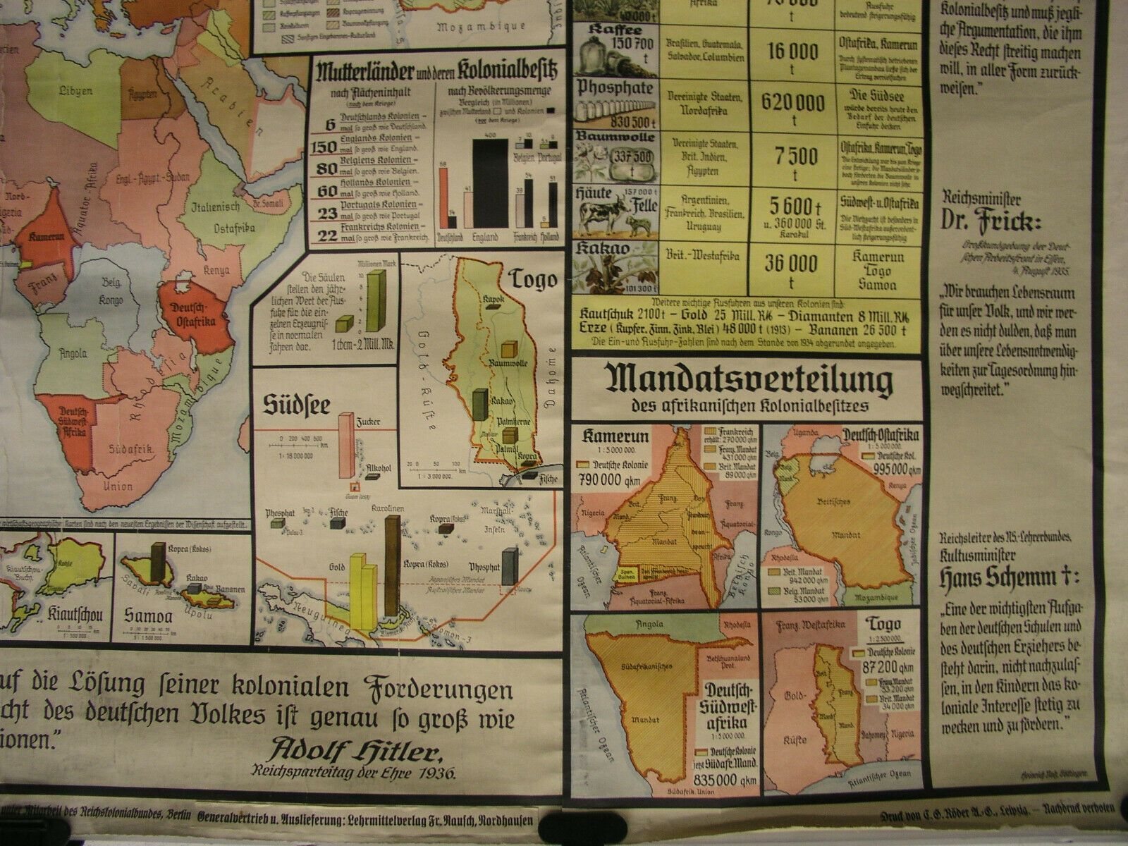 Schul-Wandkarte Deutsche Kolonien DOA Südwest Kamerun Togo 181x128c vintage 1937